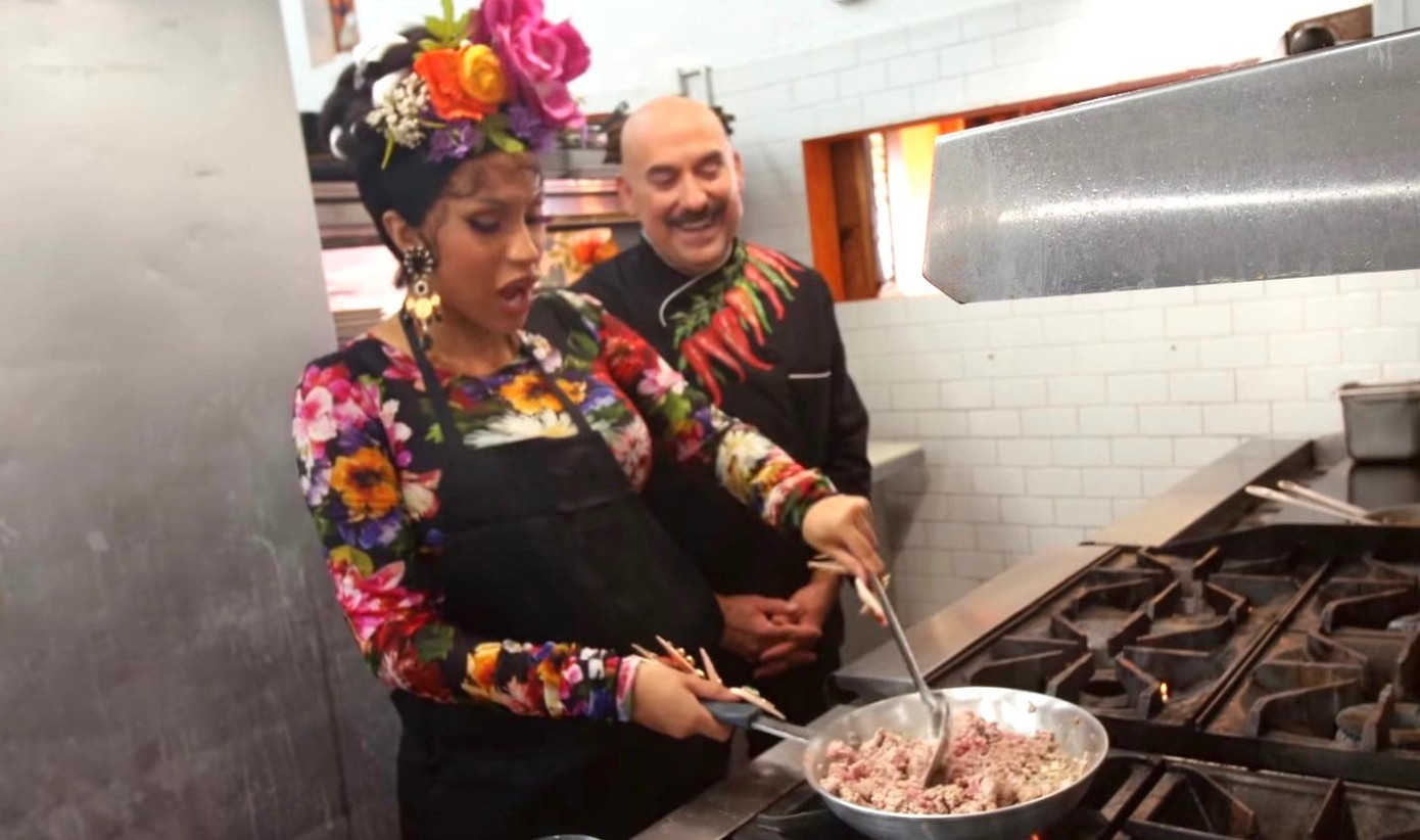 | Cardi B trổ tài nấu nướng các món ăn Mỹ Latinh cùng người mẫu Indya Moore. |