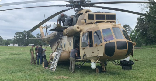 Đầu tiên, một chiếc trực thăng Mi-17 Hip do Nga sản xuất đã hạ cánh khẩn cấp, và sau đó, một chiếc trực thăng Bell 407 đã đến, mang theo các bộ phận thay thế cần thiết.