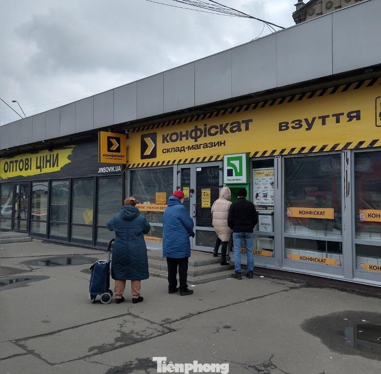 | Người dân chờ thanh toán tiền ở một siêu thị tại Kiev |