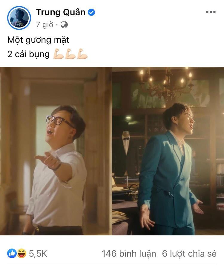 Dòng trạng thái ngay lập tức nhận được nhiều tương tác từ cư dân mạng. Dưới phần bình luận, fan không khỏi trầm trồ khen ngợi sự lột xác của Trung Quân Nhiều bình luận vui tính còn khẳng định “Rõ là 2 người khác nhau mà nhỉ?!”, “MV sau chắc lên 6 múi”... Có khán giả "lầy lội" còn liên tục chất vấn: “Anh mượn nịt bụng của Bướm Mặt Trăng đúng không?”.