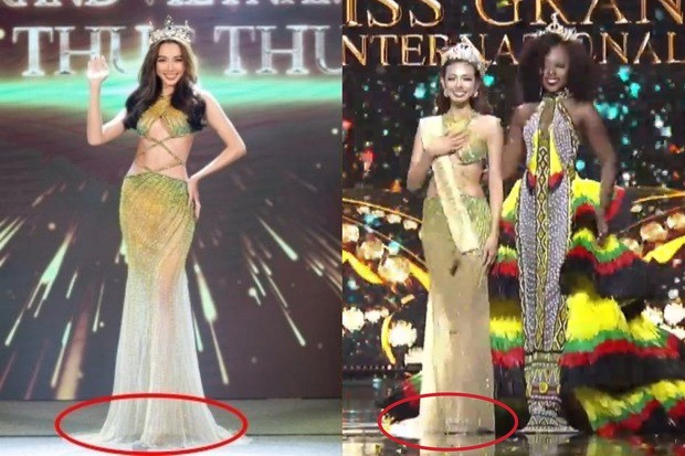 Hành động này của Ý Nhi cùng ê-kíp khiến mọi người nhớ ngay đến Hoa hậu Thùy Tiên. Bởi ngay trước đêm Chung kết Miss Grand International 2021, Thùy Tiên cũng hoang mang khi bộ váy dạ hội quá dài dễ gây vướng víu. Khi ấy, Thùy Tiên chỉ có một mình nên cô đã mượn kéo để tự cắt bớt gấu váy, nhờ đó mà bộ váy trở nên vừa vặn hơn rất nhiều.