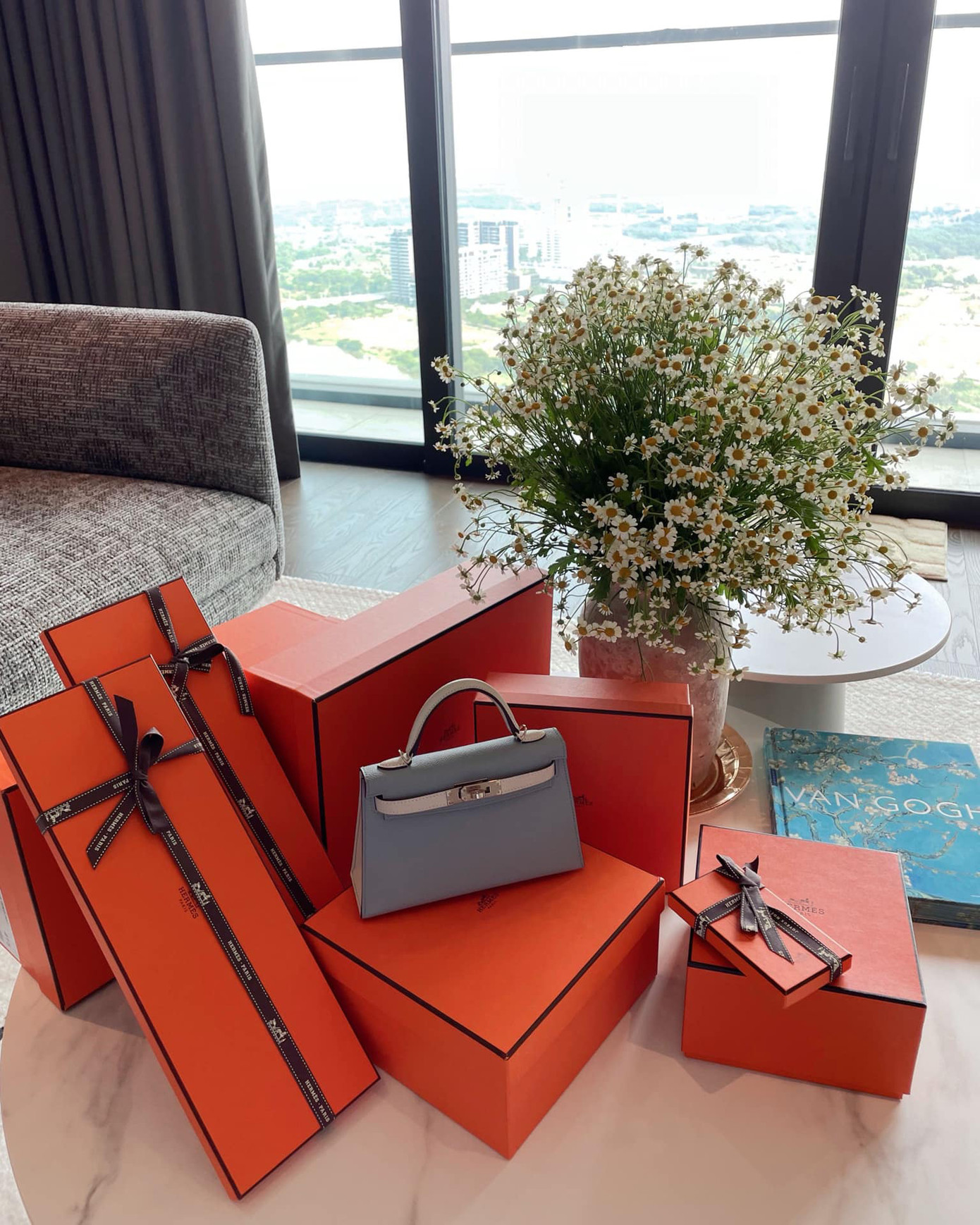 Midu sở hữu khá nhiều mẫu túi Hermès đắt đỏ, ngoài ra còn sắm thêm đồng hồ, trang sức, khăn quàng. Hầu như tháng nào netizen cũng thấy Midu "đập hộp" một món đồ mới của nhà mốt xa xỉ này.
