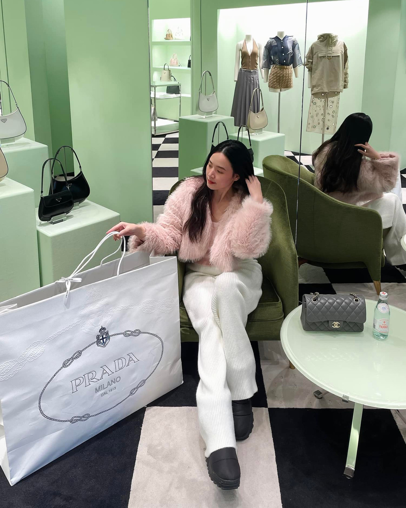 Hay hồi tháng 1 năm nay, khi cùng chồng tương lai sang Paris chụp ảnh cưới thì nữ diễn viên đã mua sắm đồ Prada rất nhiệt tình. Chỉ cần nhìn vào chiếc túi siêu khủng ở cạnh Midu là đủ biết cô sắm sửa nhiều như thế nào.