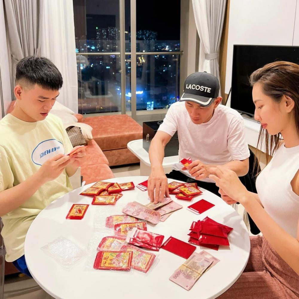 Đêm cuối ở lại Việt Nam, Hoa hậu Thùy Tiên đã cùng người trợ lý thân thiết và ba mình chuẩn bị những món quà nhỏ được đặt trong các bao lì xì.