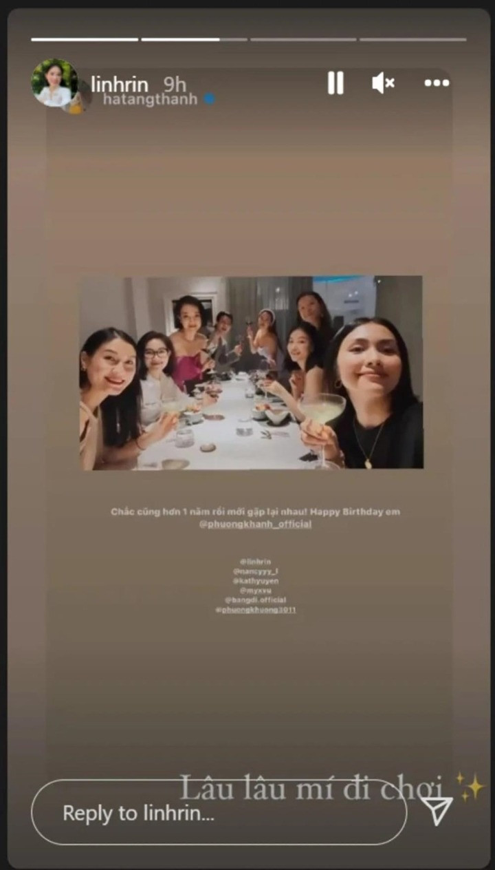 Vào dịp sinh nhật Hà Tăng, Linh Rin đăng ảnh chụp chung kèm lời nhắn nhủ hai chị em hãy chụp ảnh cùng nhau nhiều hơn nữa. "Ngọc nữ màn ảnh Việt" đã nhanh chóng đồng ý và còn gọi Linh Rin là “em iu”.