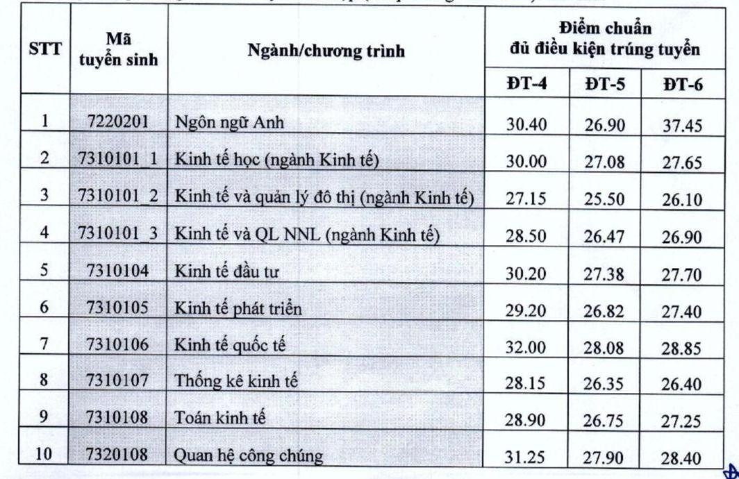 Đối với phương thức xét tuyển kết hợp, năm nay, Trường ĐH Kinh tế Quốc dân xét 6 đối tượng thí sinh. Trong đó, đối tượng 1,2,3 không sử dụng kết quả thi tốt nghiệp THPT. Điểm chuẩn dành cho 3 đối tượng này đã được nhà trường thông báo trước khi Bộ GD&ĐT công bố kết quả thi tốt nghiệp THPT.