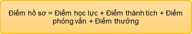 Điểm hồ sơ của thí sinh được đánh giá theo thang điểm 100, trong đó, điểm học lực chiếm 40% (tối đa 40 điểm), điểm thành tích chiếm 40% (tối đa 40 điểm), điểm phỏng vấn chiếm 20% (tối đa 20 điểm).