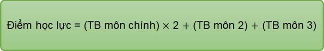 1. Điểm học lực (tối đa 40 điểm) được tính dựa trên tổ hợp 3 môn mà học sinh lựa chọn để xét tuyển. Căn cứ kết quả học tập đã khải trên hệ thống, hệ thống sẽ tự tính điểm học lực của học sinh theo công thức mô tả như sau: