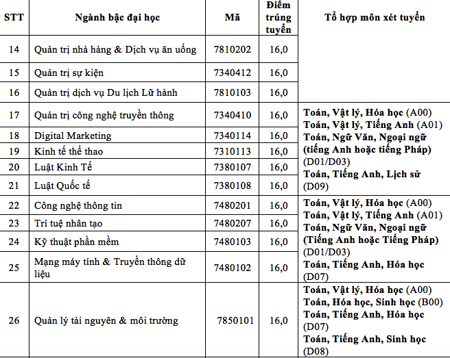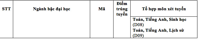 Điểm trúng tuyển của các tổ hợp môn đối với học sinh THPT thuộc khu vực 3 xét tuyển đại học hệ chính quy theo phương thức 1 (xét tuyển bằng kết quả thi THPT năm 2021, không có môn thi nào trong tổ hợp xét tuyển có kết quả từ 1,0 điểm trở xuống).
