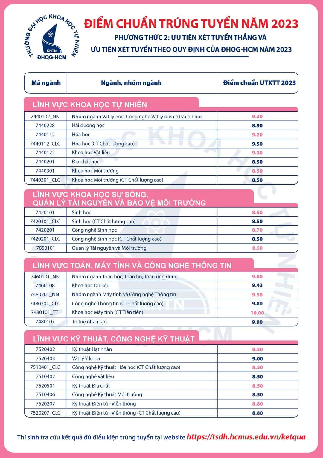 | Điểm chuẩn theo phương thức xét tuyển ưu tiên của ĐH Quốc gia TPHCM |