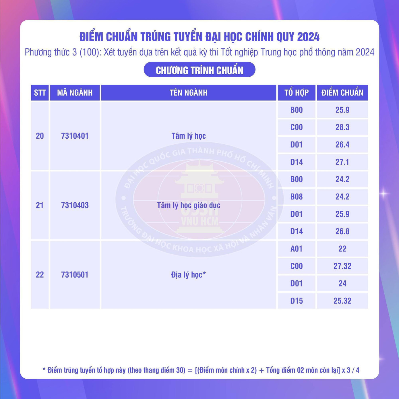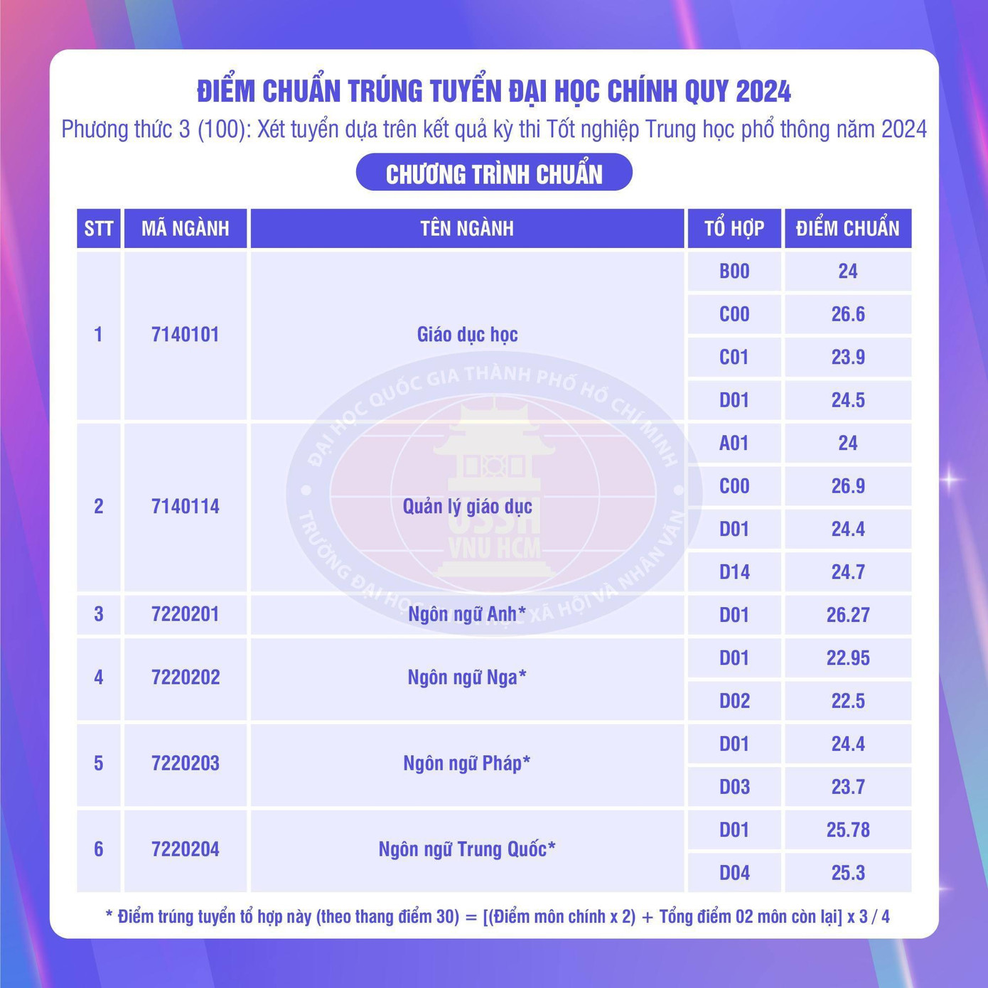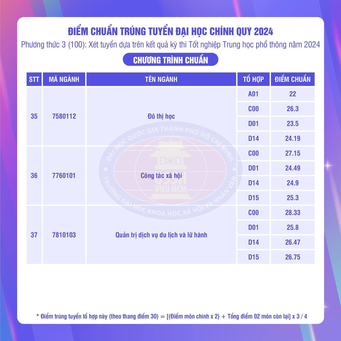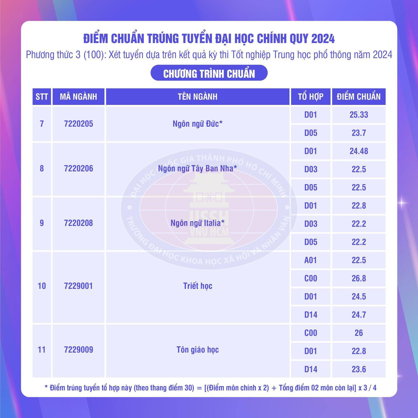 Sáng 18/8,Hội đồng Tuyển sinh Trường ĐH Khoa học Xã hội và Nhân văn TPHCM công bố điểm chuẩn trúng tuyển đại học chính quy năm 2024 bằng phương thức xét tuyển dựa trên kết quả kỳ thi Tốt nghiệp THPT.