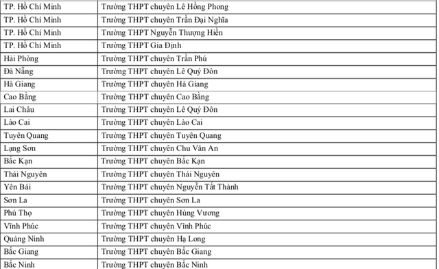 Riêng với hình thức ưu tiên xét tuyển thí sinh là học sinh lớp chuyên, mỗi ngành học, trường xét tuyển những thí sinh đã tốt nghiệp các trường THPT trong danh sách, theo quy định của trường.