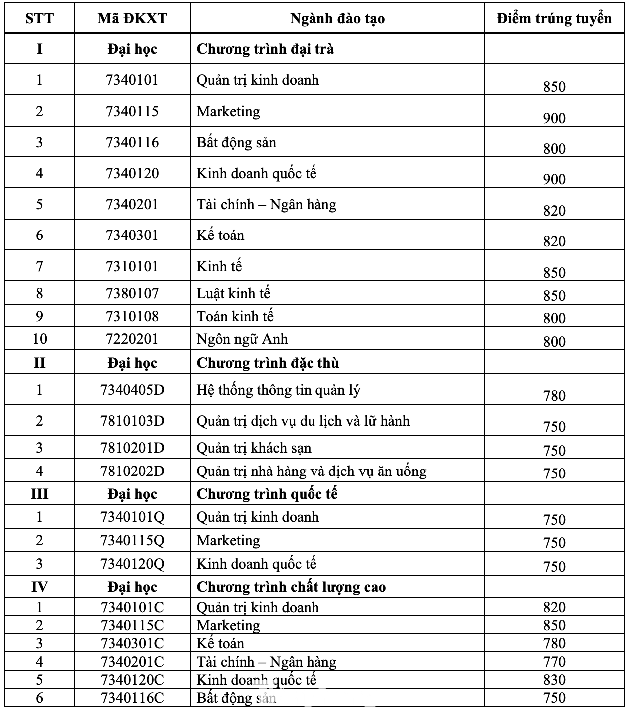- Có điểm xét tuyển bằng hoặc lớn hơn điểm trúng tuyển của từng ngành đào tạo, từng chương trình đào tạo theo từng phương thức xét tuyển tương ứng.