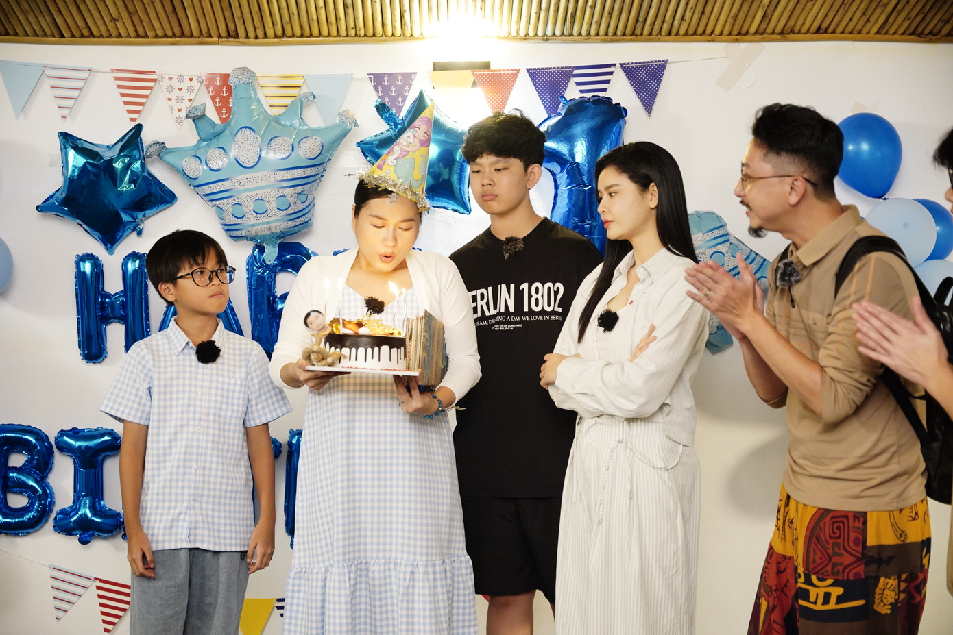 Ngay khi bước vào ngôi nhà tại Tuy Hòa, Lâm Vỹ Dạ không giấu được sự bất ngờ trước những màn trang trí hoành tráng với màu xanh yêu thích của nữ diễn viên. Cùng với đó, lời chúc từ Trương Quỳnh Anh và bé Sushi khiến Lâm Vỹ Dạ đầy cảm xúc. Diễn viên Võ Tấn Phát cũng gửi đến những lời chúc mừng cho đàn chị.