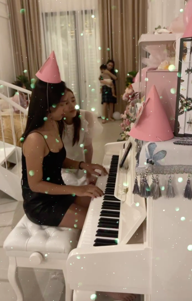Góp vui cho bữa tiệc, giọng ca Không Thể Cùng Nhau Suốt Kiếp hát live với phần đệm đàn của ca sĩ Ái Phương, trong khi "chủ nhà" Trường Giang cặm cụi trang trí tiệc sinh nhật cho bà xã. Ngoài những câu chuyện trò vui vẻ, thân thiết của dàn sao, người hâm mộ còn chú ý đến không gian biệt thự sang trọng của cặp vợ chồng đình đám nhất nhì V-Biz.