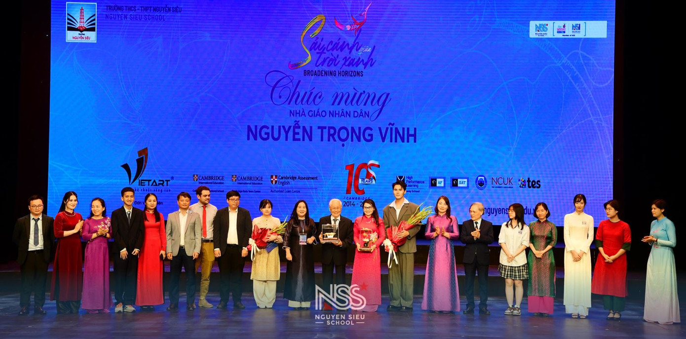 Tham dự buổi lễ, Tiến sĩ Trần Thế Cương - Giám đốc Sở GD&ĐT Hà Nội chúc mừng thầy Vĩnh và trường Nguyễn Siêu đã đạt được danh hiệu cao quý nhất, đồng thời bày tỏ niềm tự hào khi Nguyễn Siêu là điển hình tiên tiến của giáo dục Thủ đô, là cây cầu đưa thế hệ trẻ Việt Nam ra thế giới. Ông cũng dùng hình ảnh ngòi bút “tả thiên thanh” để mong muốn Nguyễn Siêu tiếp tục viết lên trời xanh ước vọng vì một đất nước hùng cường, phồn thịnh, hạnh phúc.