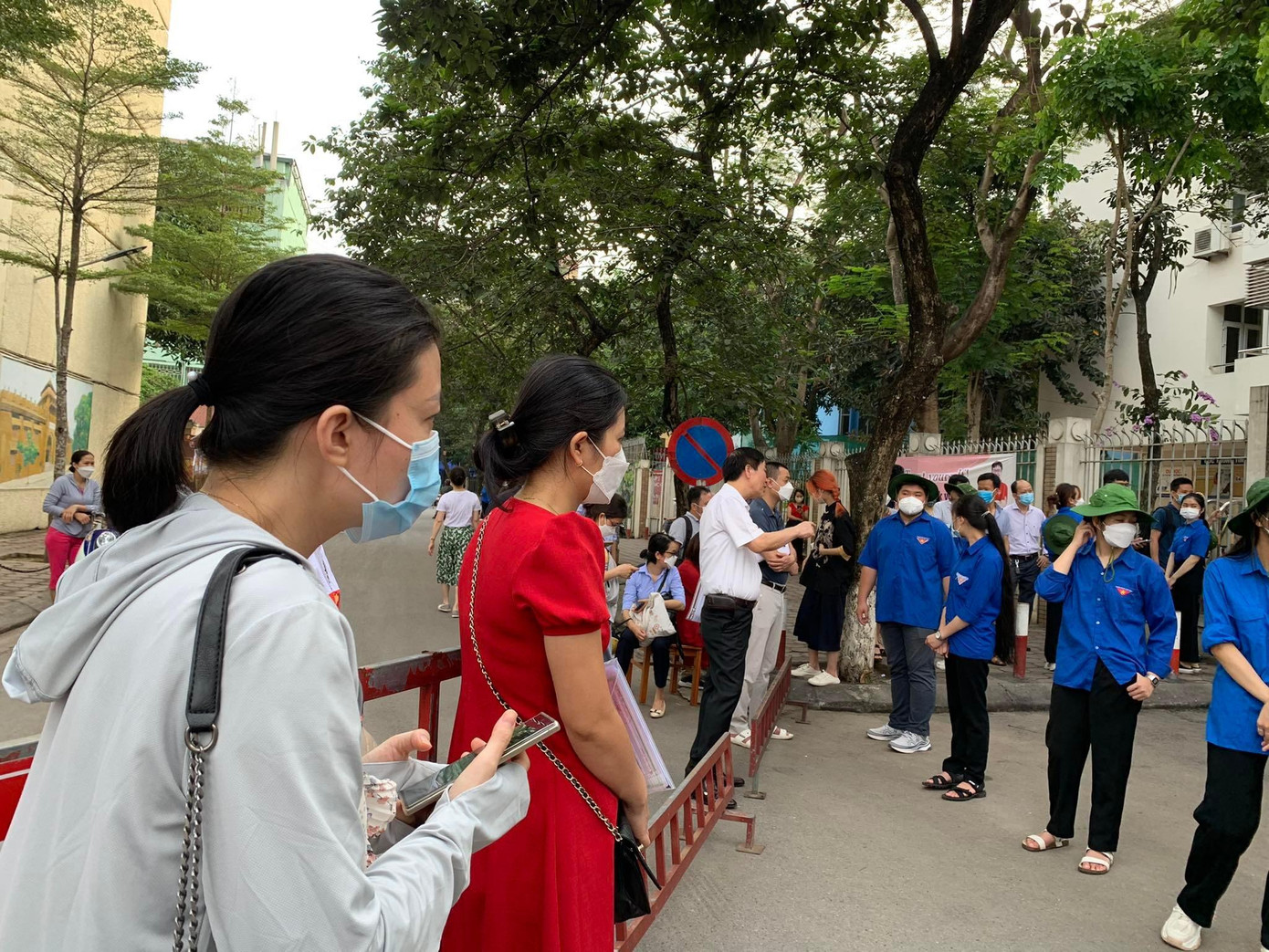 | Nhiều phụ huynh nhà xa ở Hoài Đức, Đan Phượng,... đợi con |