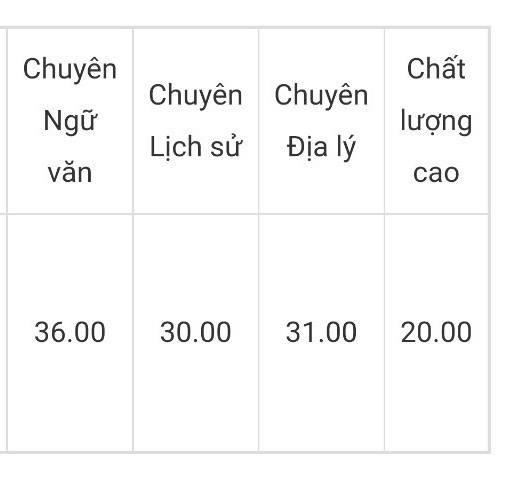 So với điểm chuẩn được thông báo trước đó thì chuyên Ngữ văn hạ 1 điểm, chuyên Địa lý hạ 3 điểm và chuyên lịch sử hạ 2,25 điểm.