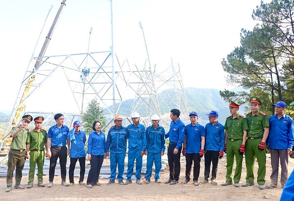 HHTO - Đoàn công tác T.Ư Đoàn do đồng chí Nguyễn Thị Thu Vân - Uỷ viên BTV, Trưởng Ban Thanh niên nông thôn T.Ư Đoàn đã đến thăm các đội hình thanh niên tình nguyện xung kích hỗ trợ đường dây 500kV mạch 3 tại xã Quảng Đông, huyện Quảng Trạch, tỉnh Quảng Bình.