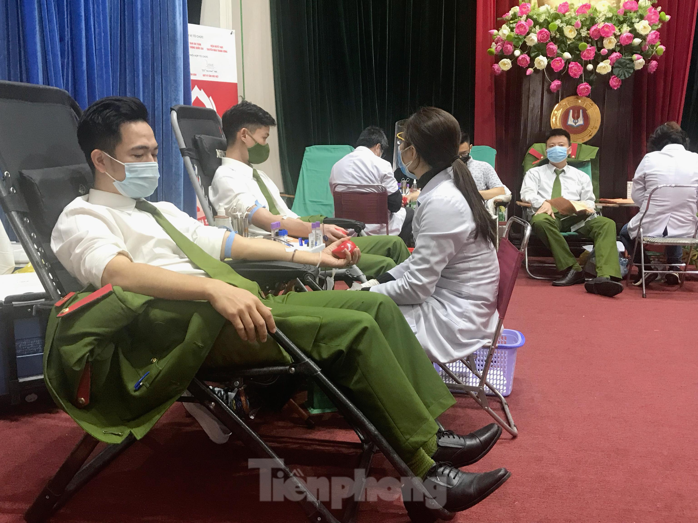 Ngay từ sáng sớm, các học viên Học viện Cảnh sát Nhân dân đã có mặt để hưởng ứng chương trình Chủ nhật Đỏ, trực tiếp tham gia hiến máu.
