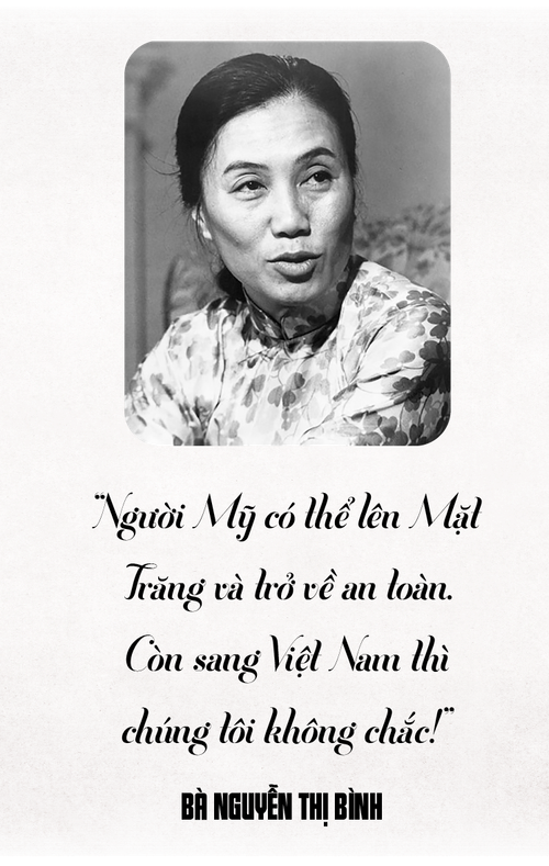 “Người Mỹ có thể lên Mặt Trăng và trở về an toàn. Còn sang Việt Nam thì chúng tôi không chắc!” Đây là một trong những câu nói nổi tiếng nhất của bà Nguyễn Thị Bình, thể hiện sự kiên quyết và cảnh báo về hậu quả của việc Mỹ can thiệp vào Việt Nam.