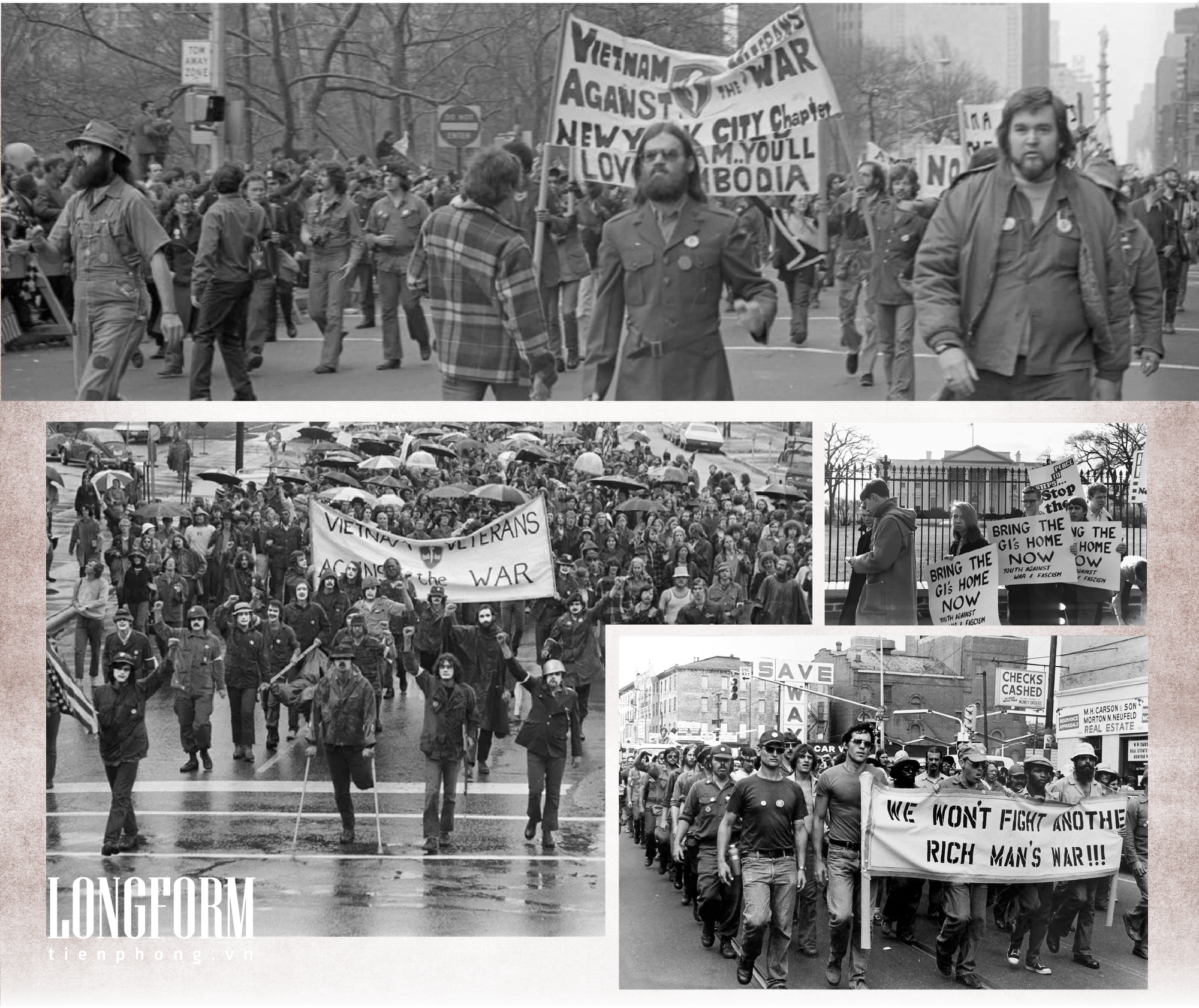 Tại Mỹ, phong trào phản chiến bắt đầu từ năm 1964, khi Mỹ bắt đầu ném bom miền Bắc Việt Nam và đưa quân chiến đấu vào miền Nam. Ban đầu, phong trào được các nhà hoạt động hòa bình, trí thức cánh tả và sinh viên đại học khởi xướng, rồi lan rộng kể từ sau cuộc Tổng tiến công Tết Mậu Thân năm 1968, thu hút sự tham gia của nhiều tầng lớp xã hội. Hàng trăm nghìn người tham gia các cuộc tuần hành phản đối chiến tranh, đặc biệt tại những thành phố lớn như Washington D.C., San Francisco, New York... Nhiều thanh niên Mỹ từ chối nhập ngũ hoặc hủy giấy gọi nhập ngũ để thể hiện sự phản kháng. Cuộc biểu tình tại Lầu Năm Góc ngày 21/10/1967 thu hút hàng chục nghìn người và trở thành biểu tượng của phong trào phản chiến.
