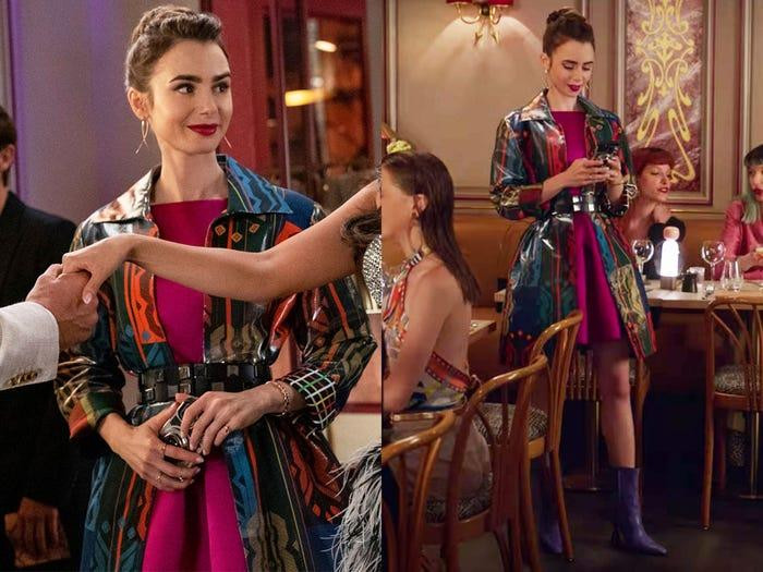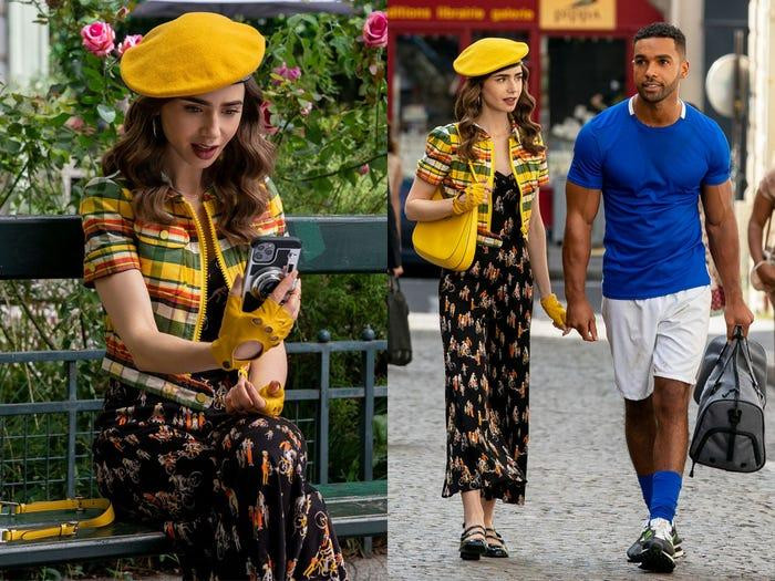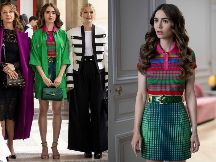Trong mùa 2 của Emily in Paris, nữ chính Emily Cooper (Lily Collins) đưa người xem trở lại “Kinh đô ánh sáng” và cho tất cả ngắm nhìn tủ quần áo mới của mình. Những trang phục với những họa tiết nổi bật; sắc xanh lá cây, vàng và đỏ ngăn cách cô nàng với những người bạn và đồng nghiệp Pháp có gu ăn mặc nhã nhặn hơn.