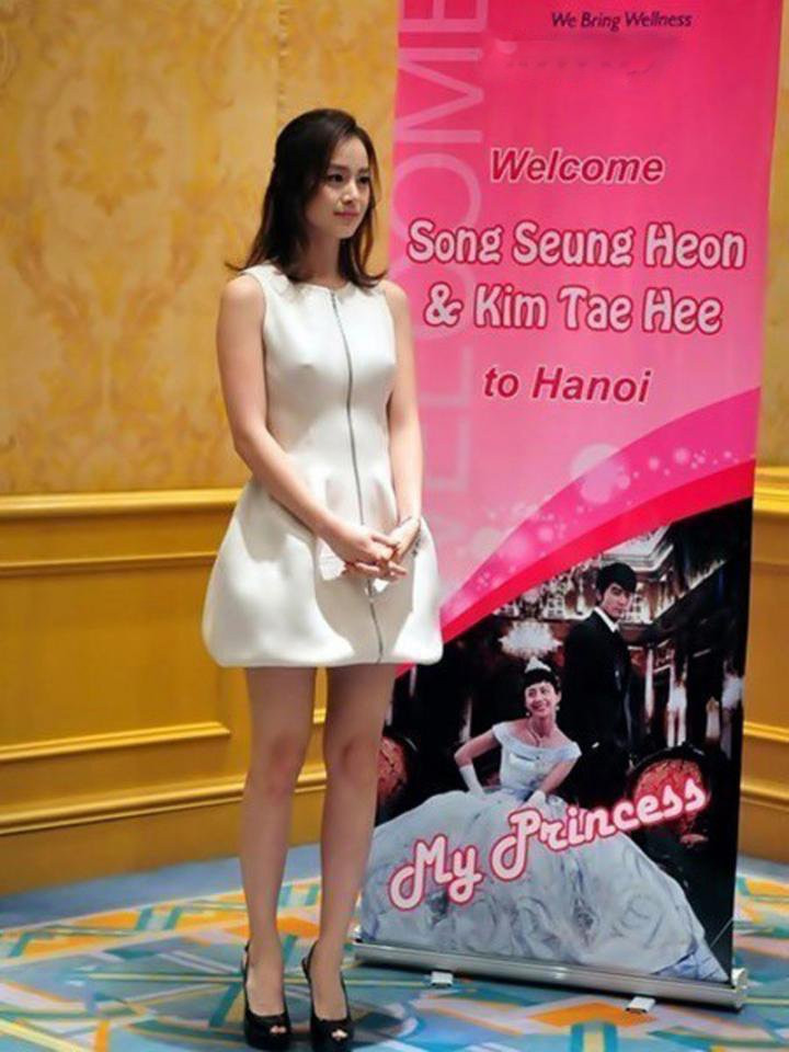 Trong lần đầu tiên tới Việt Nam dự sự kiện, Kim Tae Hee vẫn giữ phong độ nhan sắc đẹp như nữ thần. Chỉ có điều chiếc váy cô mặc lại gây bối rối cho người nhìn.
