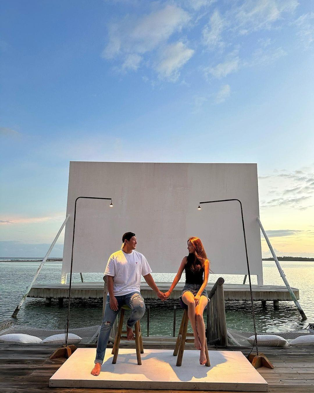 Jiyeon và Hwang Jae Gyun đã cùng nhau tận hưởng không khí nhiệt đới của bãi biển Maldives bằng những hoạt động giải trí như tắm biển, check-in "chanh sả" cùng những trò chơi ngoài trời. Nữ thần tượng không giấu nổi sự hào hứng của mình khi đăng tải đoạn video ghi lại khoảnh khắc chồng mình trượt thẳng xuống biển đầy sảng khoái.