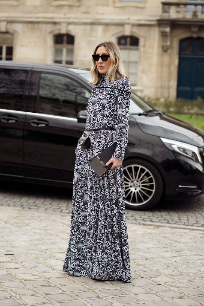 Váy thun maxi dài tay sẽ mang lại cho bạn vẻ ngoài nữ tính và trang nhã. Phối thêm chiếc túi đeo hông kích thước nhỏ để làm điểm nhấn, khiến tổng thể trở nên bắt mắt và ấn tượng hơn.