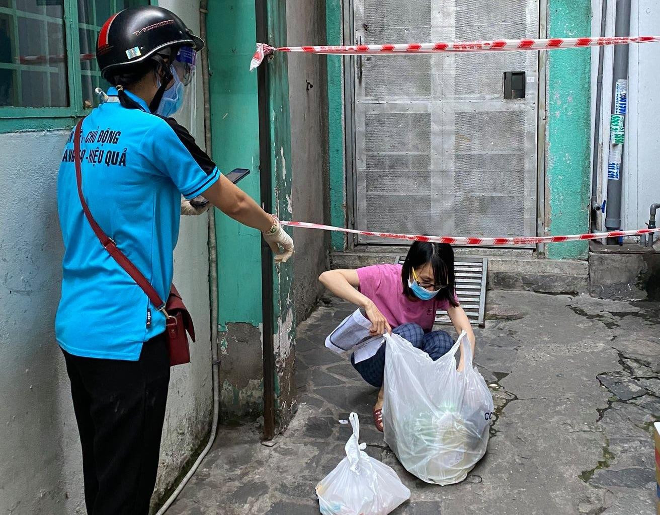 Ngoài hỗ trợ thuốc men, các lực lượng tình nguyện còn hỗ trợ cả như yếu phẩm cho người dân và gia đình F0