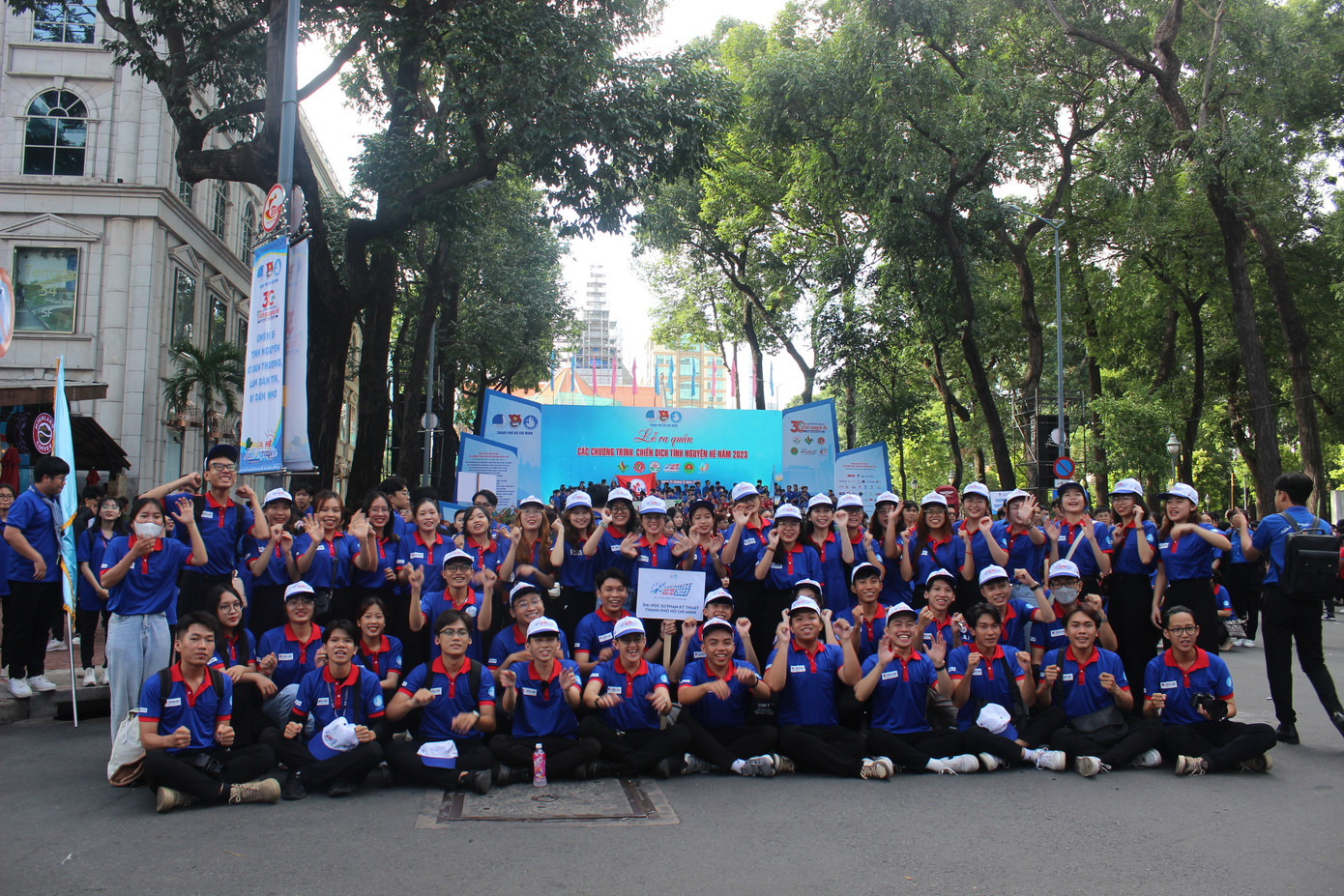 Đội hình tình nguyện của các trường đại học tại TP. HCM tham dự Lễ ra quân. (Ảnh: Văn Tiệp)