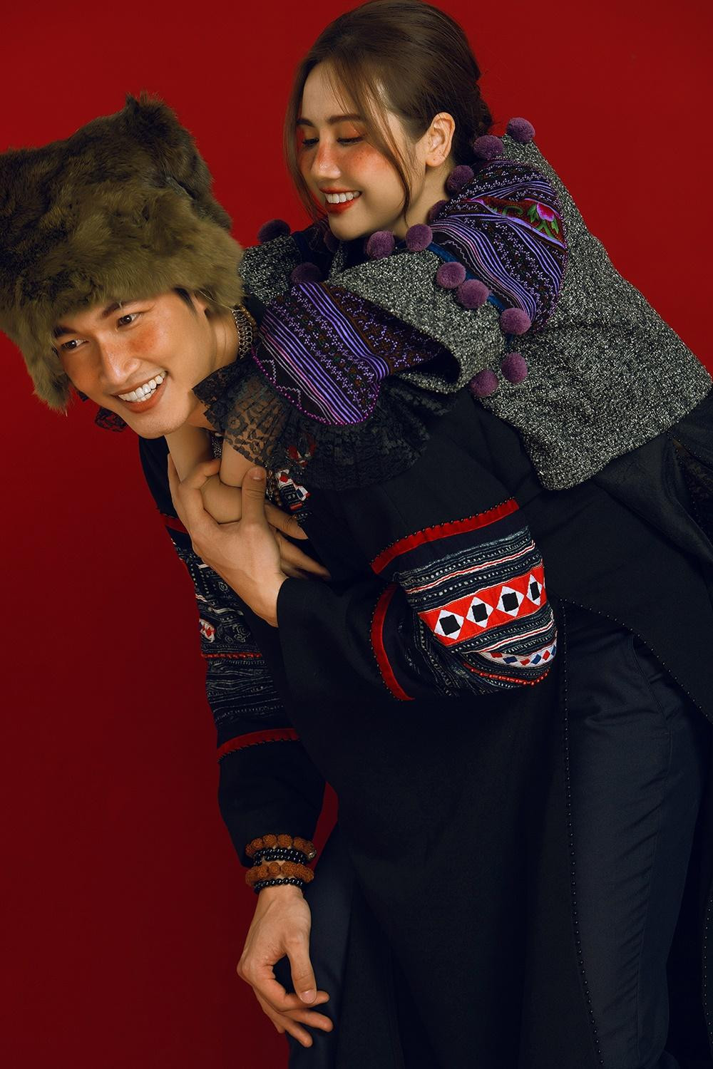 Nhưng mới đây, hai diễn viên lại chụp chung bộ ảnh mặc đồ thổ cẩm vô cùng độc đáo. Bộ ảnh kể về cảm xúc hạnh phúc của một cặp tình nhân đang chuẩn bị kết hôn nên Đình Tú, Huyền Lizzie vô cùng tình cảm, ngọt ngào bên nhau.