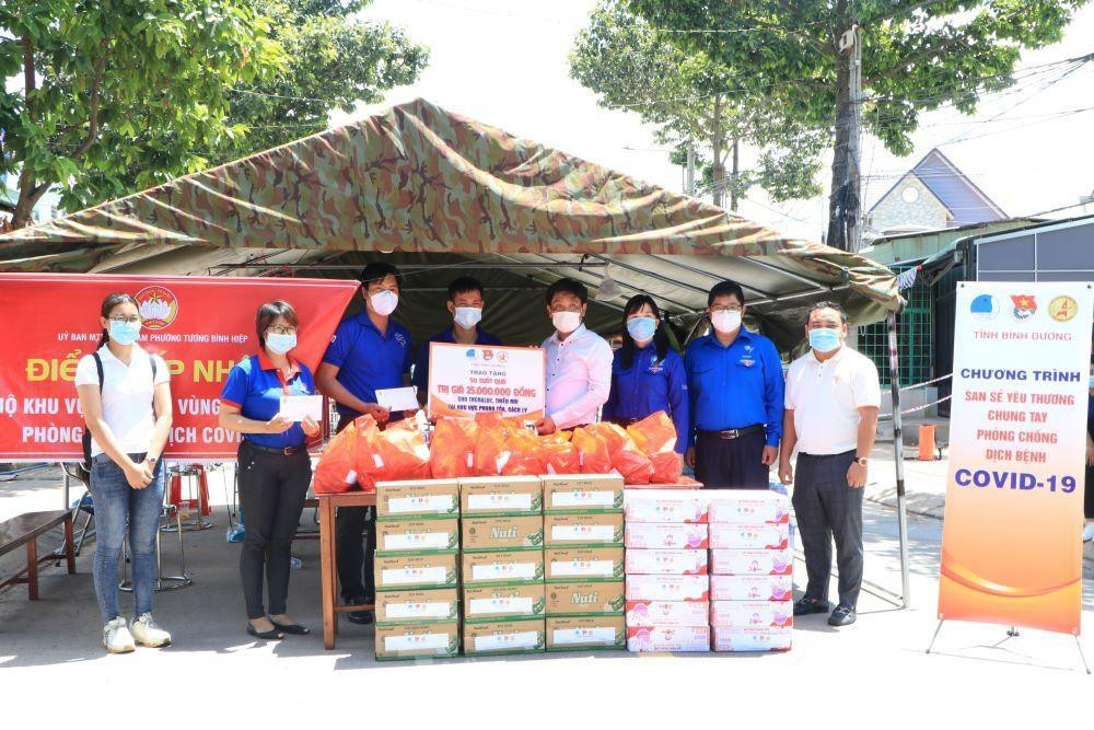 Nhằm chia sẻ với những khó khăn mà người dân, thanh niên công nhân đang gặp phải do ảnh hưởng của dịch bệnh, sáng nay (28/6), Ban Thường vụ Tỉnh Đoàn, Ban Thư ký Hội Liên hiệp Thanh niên Việt Nam tỉnh Bình Dương phối hợp cùng với Hội Doanh nhân trẻ Bình Dương tổ chức chương trình “San sẻ yêu thương – Chung tay phòng, chống dịch bệnh COVID-19”trao tặng các phần quà đến người dân có hoàn cảnh khó khăn sinh sống tại các khu vực phong tỏa.