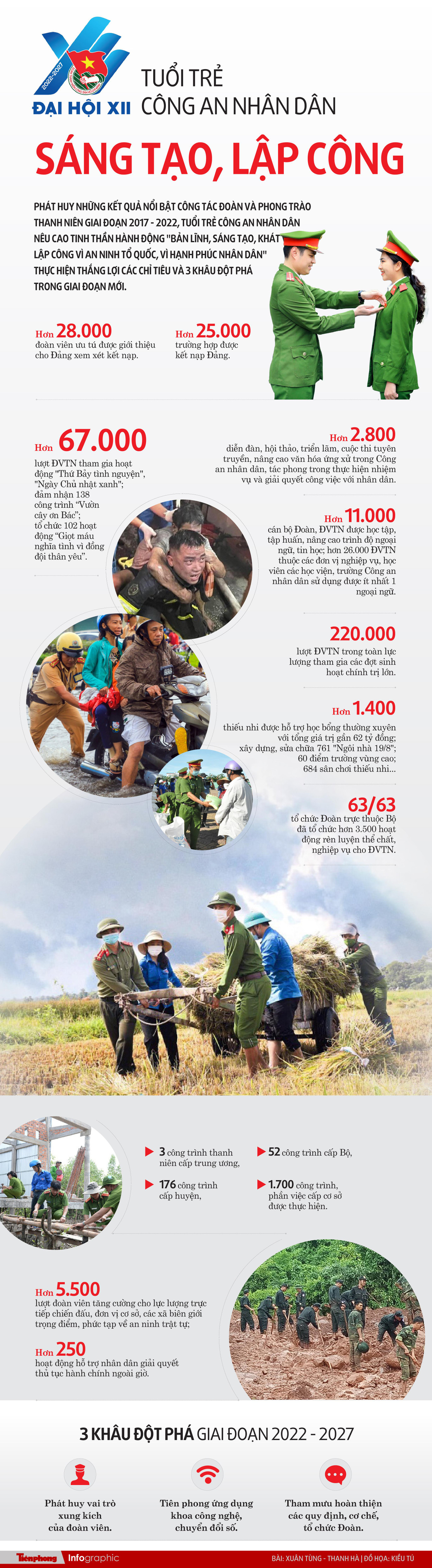 TPO - Phát huy những kết quả nổi bật công tác Đoàn và phong trào thanh niên giai đoạn 2017 - 2022, tuổi trẻ Công an nhân dân nêu cao tinh thần hành động "bản lĩnh, sáng tạo, khát vọng lập công vì an ninh Tổ quốc, vì hạnh phúc Nhân dân" thực hiện thắng lợi các chỉ tiêu và 3 khâu đột phá trong giai đoạn mới.