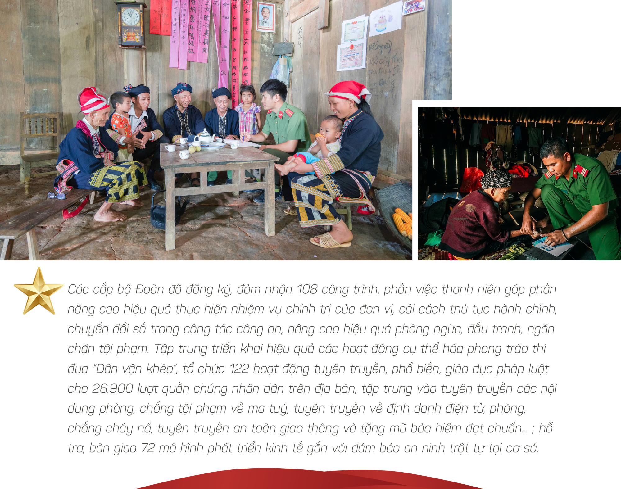 | Thông qua việc thi đua thực hiện nhiệm vụ, ĐVTN Công an cơ sở TPHCM ngày càng được tôi luyện, nâng cao bản lĩnh chính trị, trình độ công tác, xây dựng các đơn vị Công an cấp xã trở thành 312 “pháo đài” an ninh vững chắc trên địa bàn Thành phố. |
