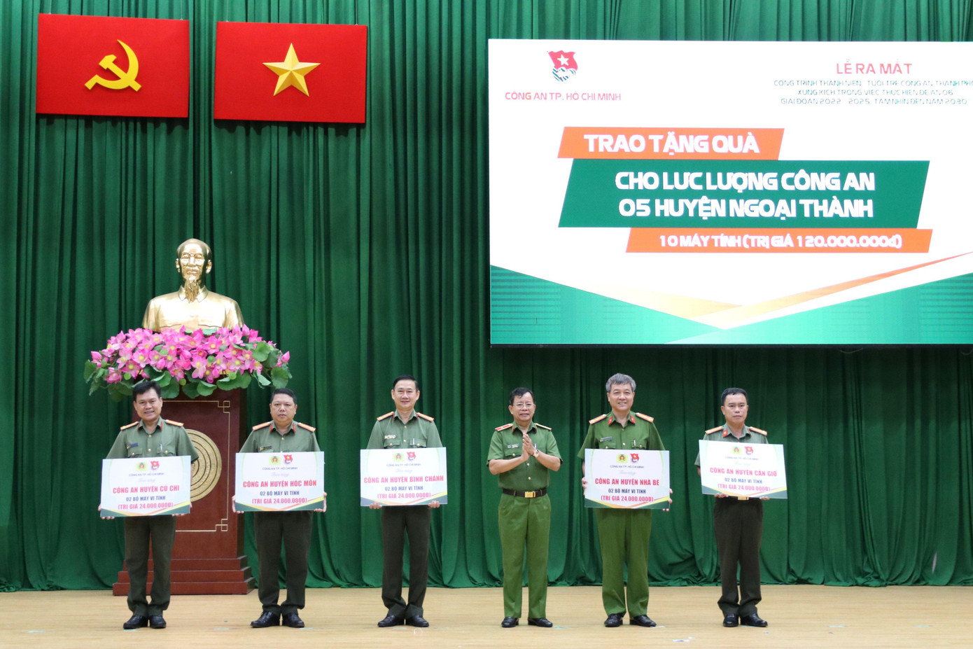Tại buổi lễ, Ban Thường vụ Đoàn Công an TPHCM đã trao tặng 10 máy tính trị giá 120 triệu đồng cho Công an 5 huyện ngoại thành. Đồng thời trao các phần quà trị giá 22 triệu đồng cho 22 cán bộ chiến sĩ là cảnh sát khu vực có hoàn cảnh khó khăn đã nỗ lực hoàn thành xuất sắc nhiệm vụ được giao.