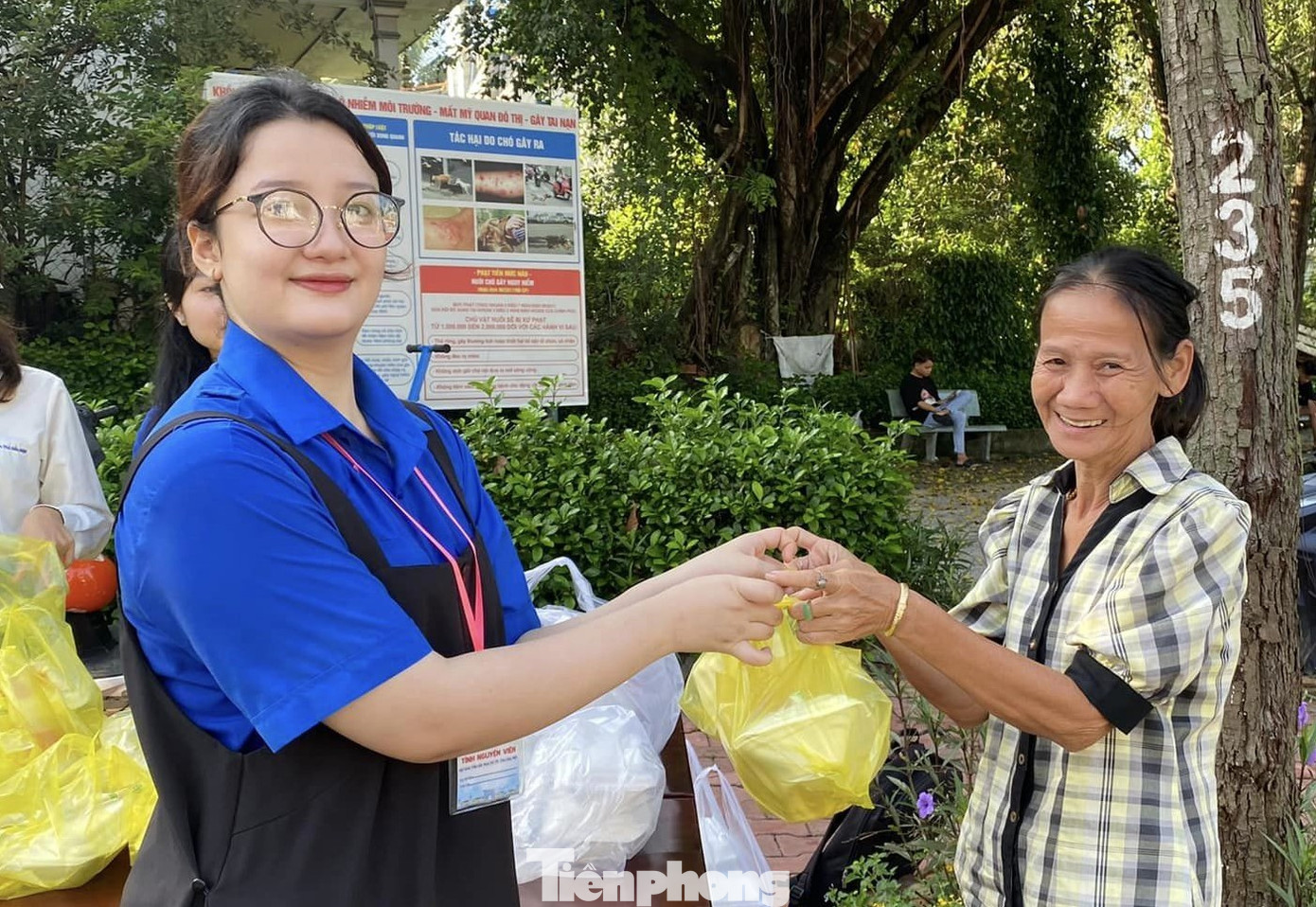 | Người dân phấn khởi khi được các bạn trẻ tặng bữa sáng miễn phí. |