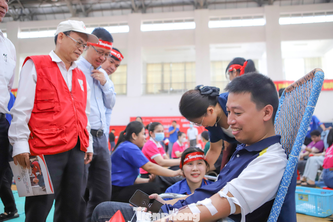 | Chương trình Chủ Nhật Đỏ tỉnh Bình Định lần thứ I – năm 2024 do báo Tiền Phong phối hợp cùng Ban Chỉ đạo (BCĐ) vận động hiến máu tình nguyện tỉnh Bình Định, Tỉnh Đoàn, Ban An toàn giao thông tỉnh, Trường ĐH Quy Nhơn, Bệnh viện Đa khoa tỉnh – Sở Y tế Bình Định tổ chức. Ảnh: Trương Định |