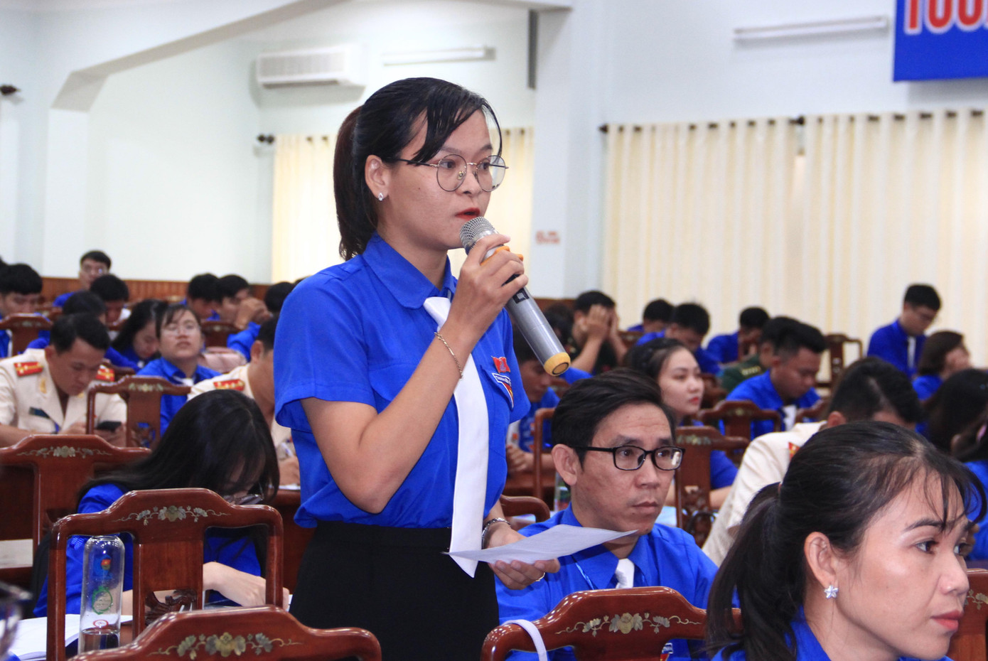 | Các ĐVTN tỉnh Ninh Thuận tham gia đặt câu hỏi, đề xuất cho lãnh đạo UBND tỉnh. Ảnh C.H |