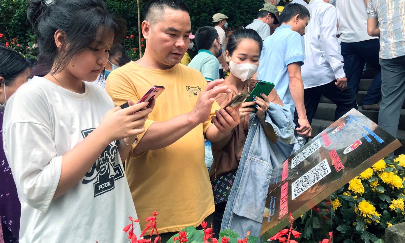 Đến Đền Hùng trong những ngày chuẩn bị Giỗ Tổ này, du khách thập phương được lực lượng thanh niên tình nguyện giới thiệu và hướng dẫn quét mã QR để tìm hiểu các thông tin về Đền Hùng. Qua một thời gian ngắn triển khai, đã có trên 50 nghìn người dân quét mã QR.