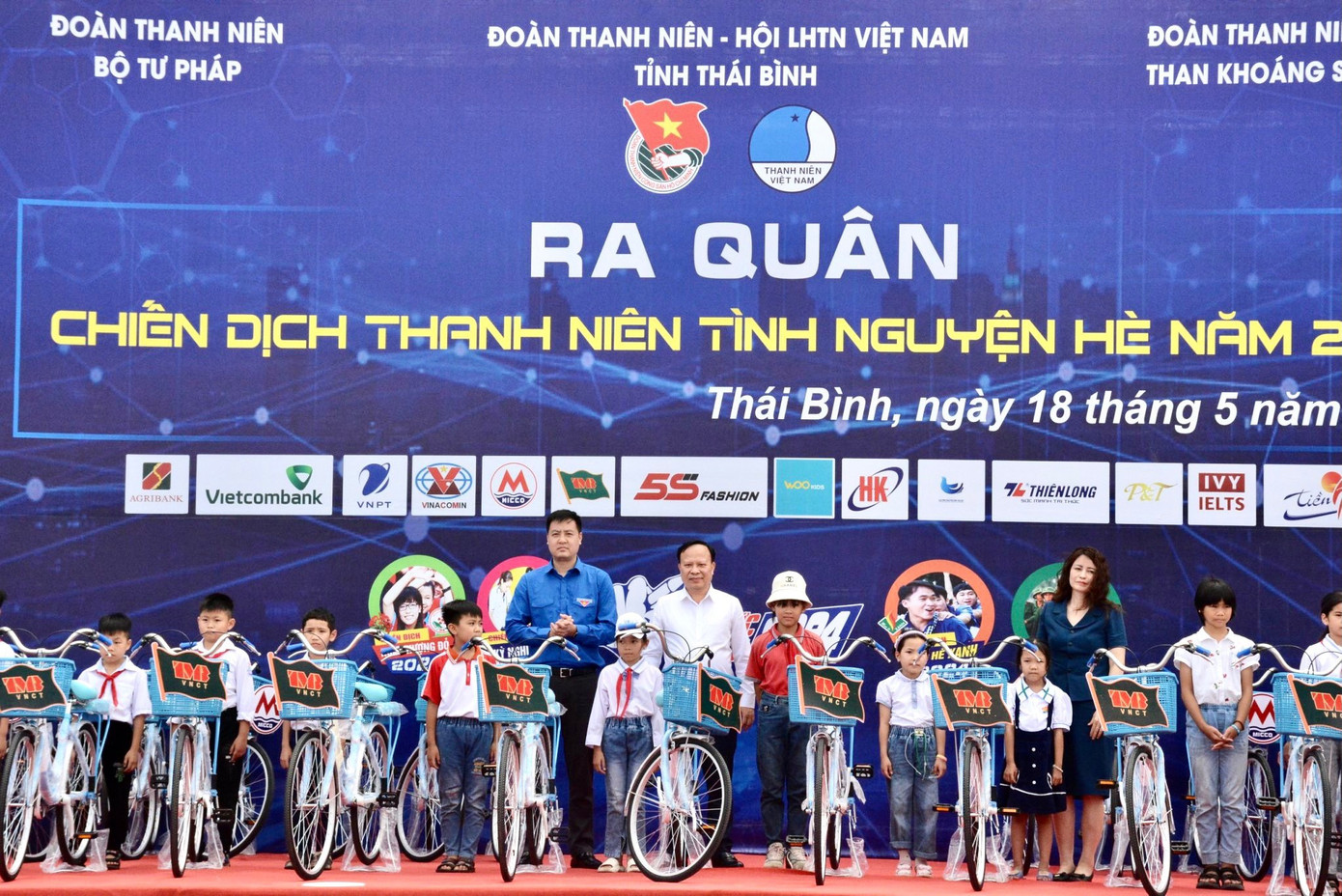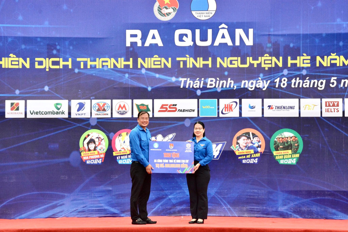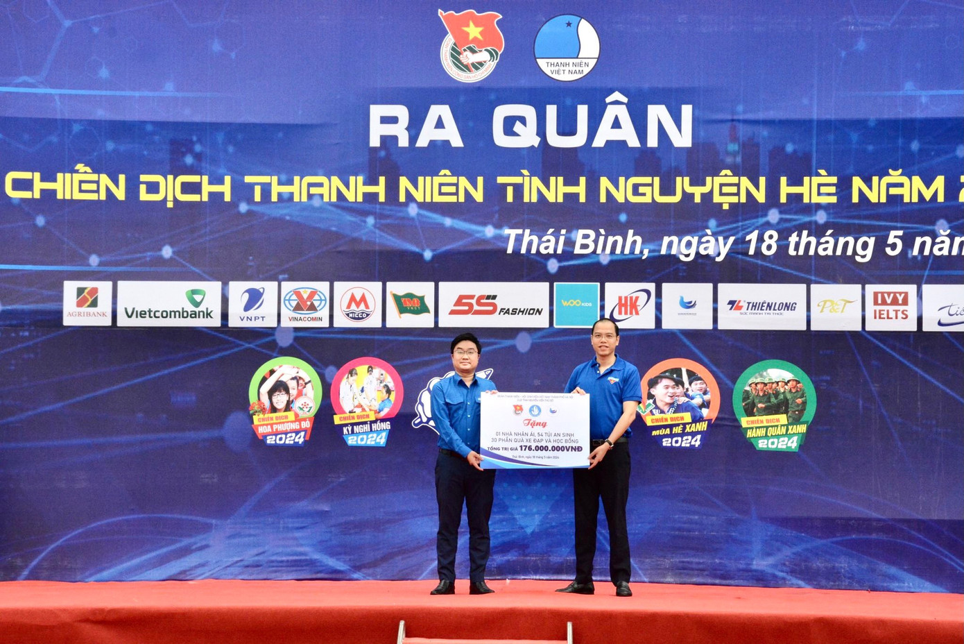Tại chương trình, T.Ư Đoàn tặng 5 công trình “Nhà vệ sinh cho em”, hỗ trợ 1 tỷ đồng vốn vay cho thanh niên khởi nghiệp; Thành Đoàn Hà Nội trao tặng 30 suất học bổng, 30 xe đạp, 54 túi an sinh, 1 công trình thanh niên “Ngôi nhà tình nghĩa” cho Tỉnh Đoàn Thái Bình.