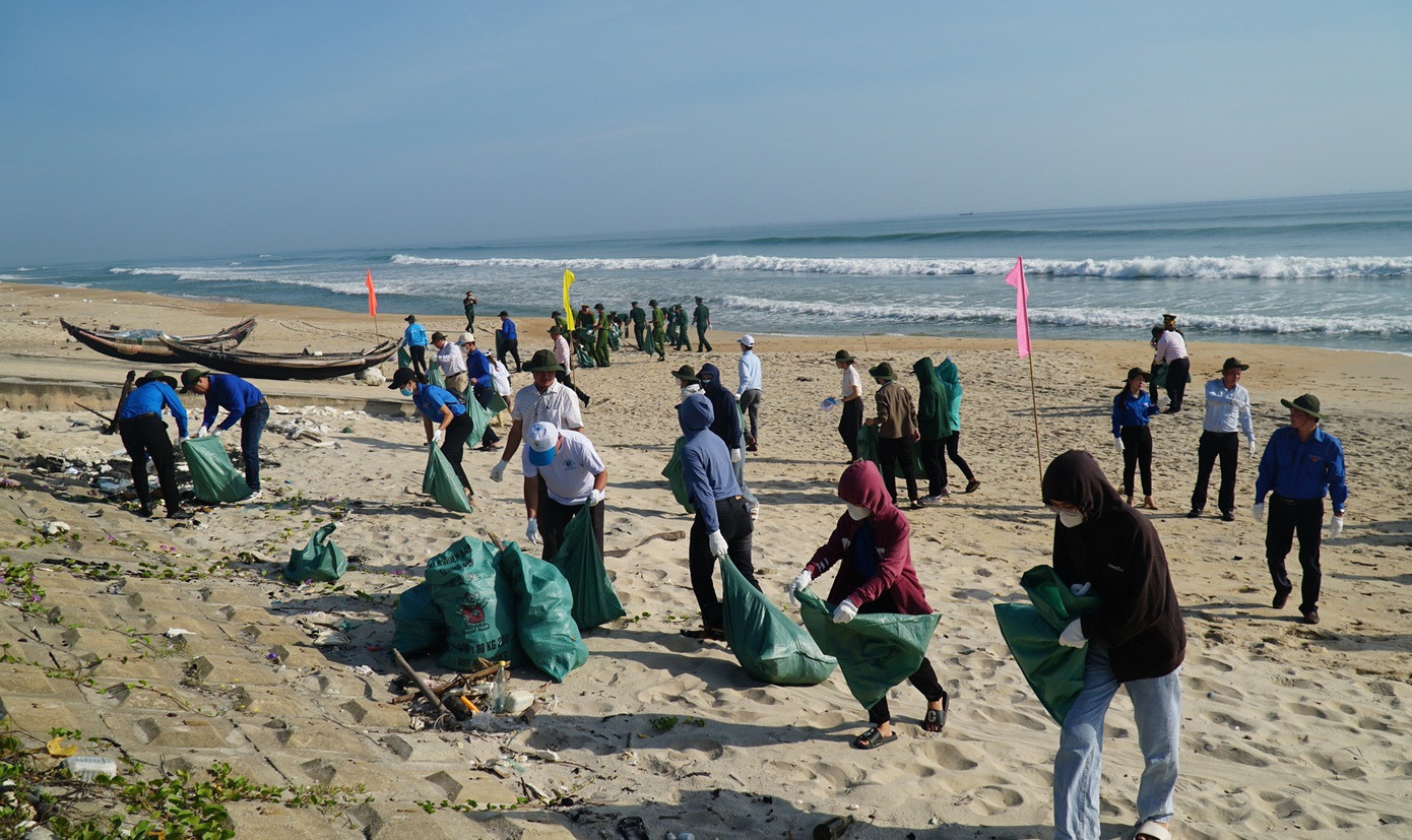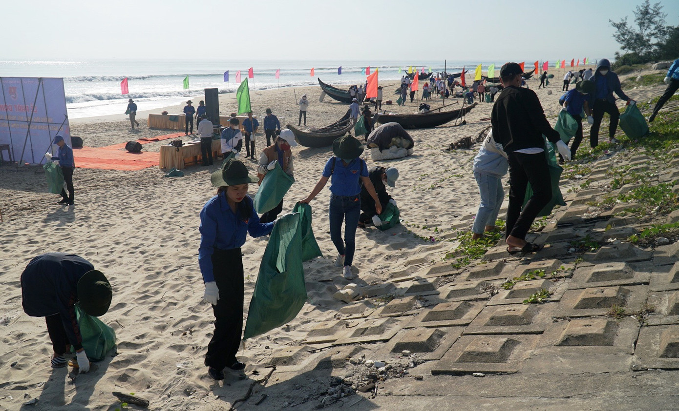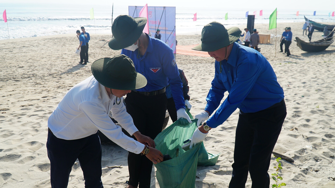 Ngay sau lễ phát động, hàng trăm đoàn viên, thanh niên cùng tham gia dọn vệ sinh khu vực ven biển Tân An, xã Quảng Công (huyện Quảng Điền, TT-Huế) góp phần giữ gìn cảnh quan, tạo môi trường thân thiện, sạch đẹp cho bãi tắm này.