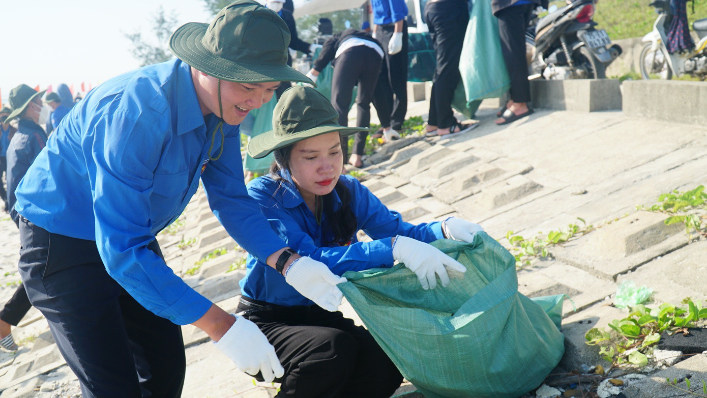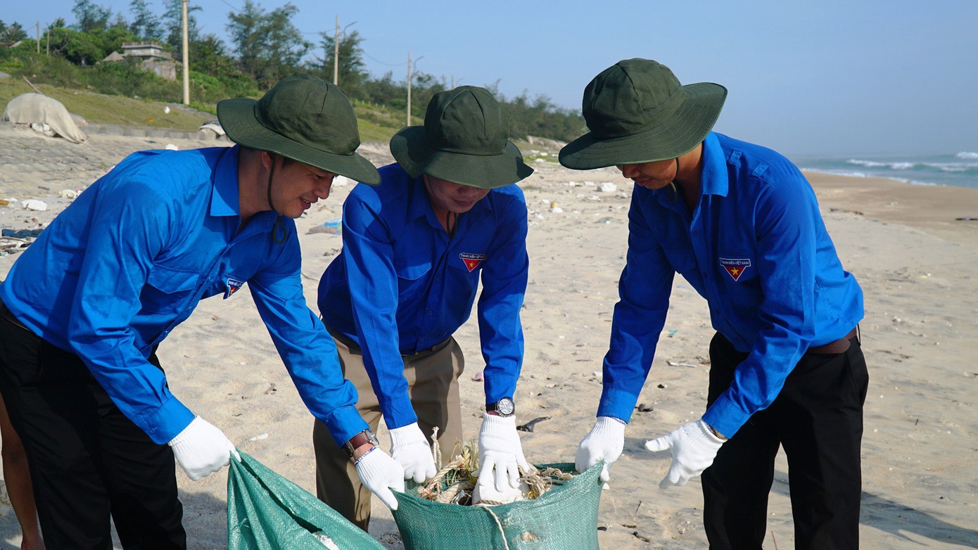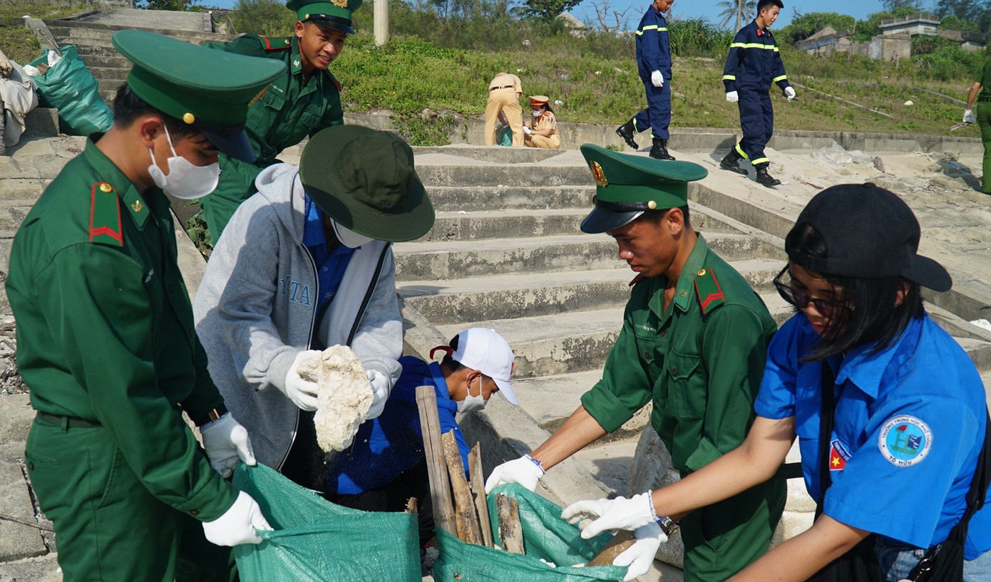 Ngay sau lễ phát động, hàng trăm đoàn viên, thanh niên cùng tham gia dọn vệ sinh khu vực ven biển Tân An, xã Quảng Công (huyện Quảng Điền, TT-Huế) góp phần giữ gìn cảnh quan, tạo môi trường thân thiện, sạch đẹp cho bãi tắm này.