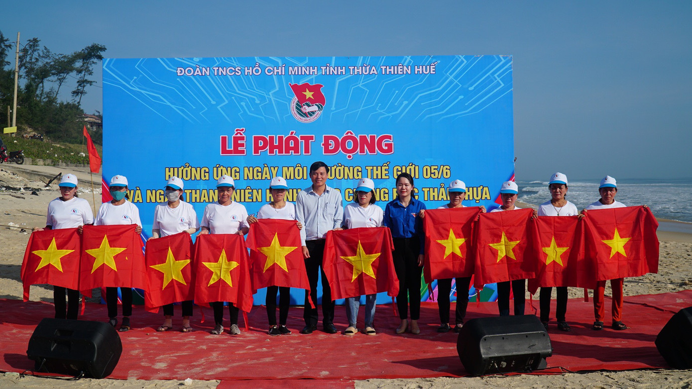 Cũng tại chương trình, Tỉnh Đoàn TT-Huế đã trao tặng 50 lá cờ Tổ quốc, 20 áo phao cho người dân ven biển huyện Quảng Điền.