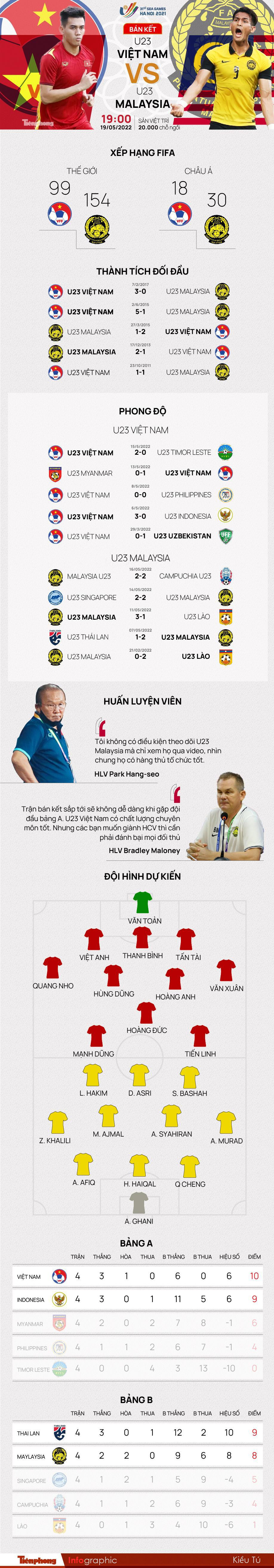 TPO - U23 Việt Nam được đánh giá cao hơn U23 Malaysia khi chiếm ưu thế sân nhà. Nhưng người hâm mộ vẫn có chút lo lắng, khi đội quân của HLV Park Hang-seo gặp khó trong việc xuyên thủng hàng phòng ngự đối thủ trong 3 trận gần nhất. Trận bán kết với U23 Malaysia trên sân Việt Trì sẽ là thách thức lớn mà U23 Việt Nam phải vượt qua.