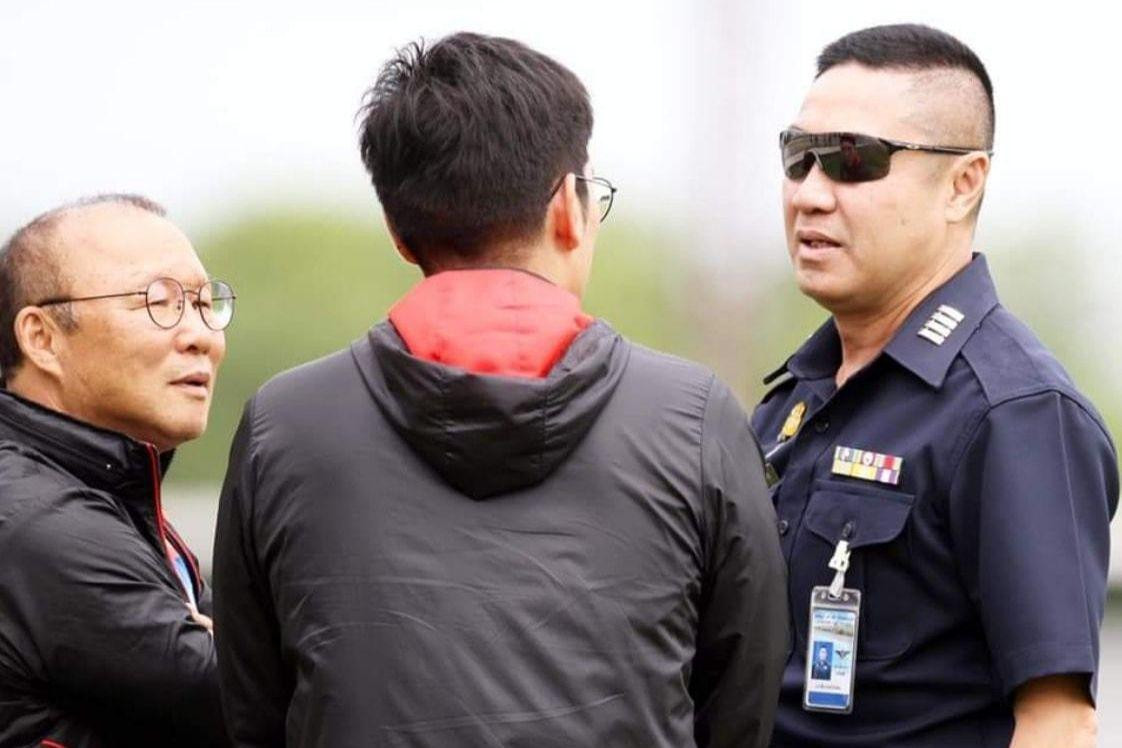| Piyapong trong chuyến ghé thăm HLV Park Hang-seo và ĐT Việt Nam. (Ảnh: Siam Sport) |