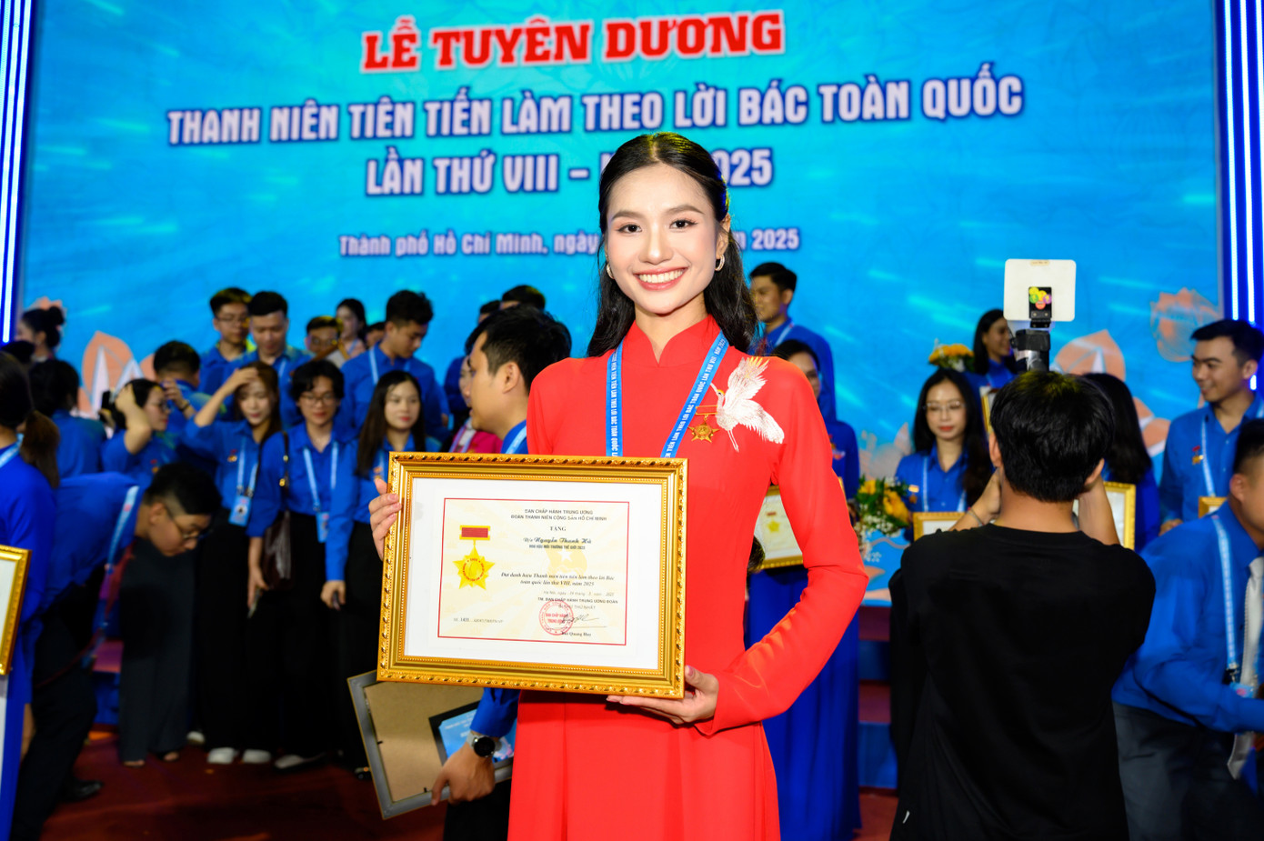 "Tôi vinh dự khi là một trong những đại biểu tham dự Đại hội Thanh niên tiên tiến làm theo lời Bác lần thứ VIII năm 2025. Hòa mình vào không khí sôi nổi, tràn đầy nhiệt huyết của tuổi trẻ cả nước, nơi mỗi người đều mang trong mình niềm tự hào, tinh thần cống hiến và sự sáng tạo, tất cả hướng về lý tưởng cao đẹp mà Bác Hồ để lại. Tôi tự hào là thanh niên Việt Nam, tin rằng thế hệ trẻ ngày nay với trí tuệ, niềm tin và lòng yêu nước tiếp tục đoàn kết, xây dựng Việt Nam ngày càng rực rỡ và vững mạnh hơn trên bản đồ thế giới”, Thanh Thủy chia sẻ.