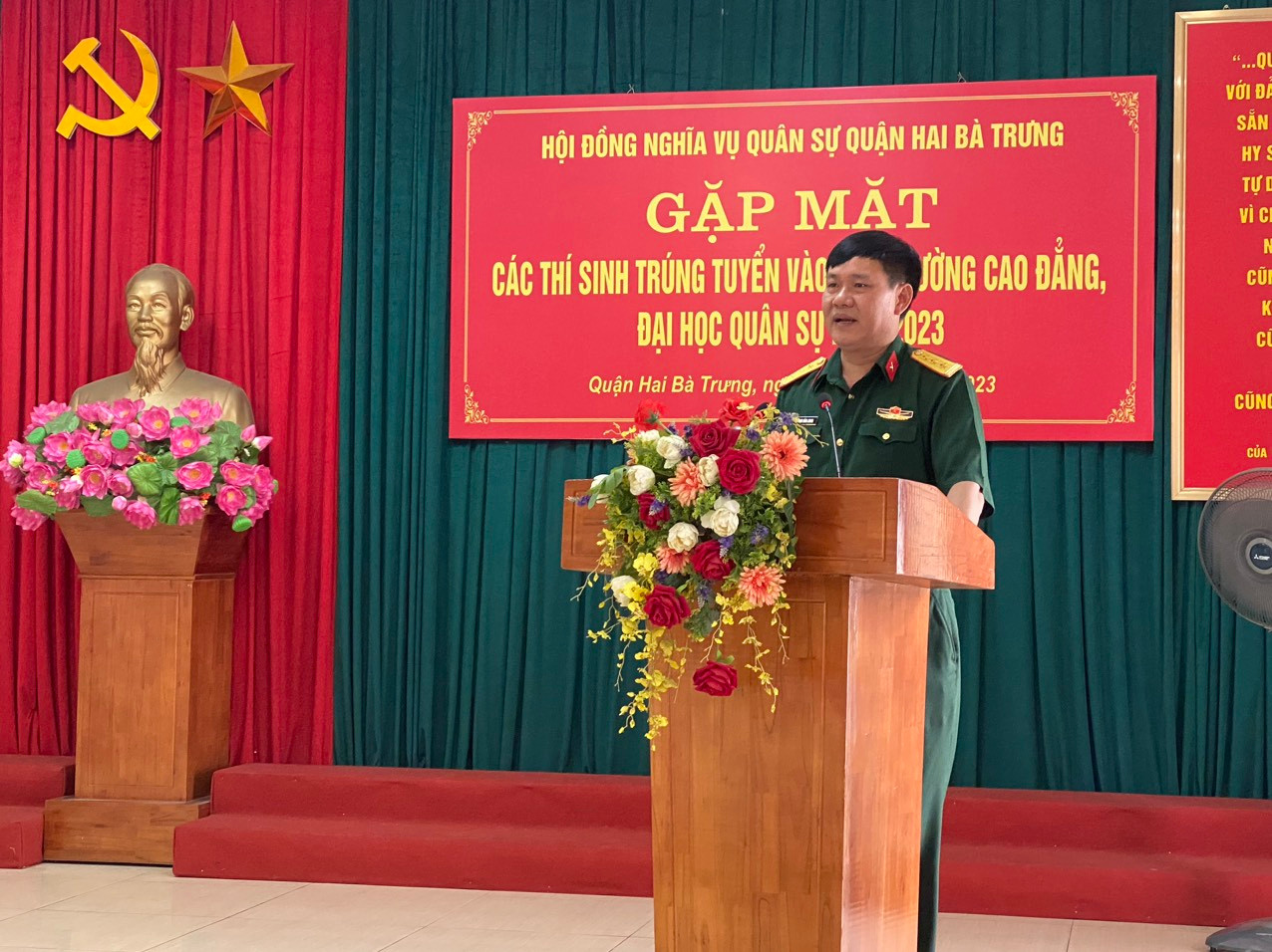 Học viên Hoàng Tuấn Minh - trúng tuyển Trường Sĩ quan Chính trị đại diện phát biểu hứa luôn nỗ lực tu dưỡng, rèn luyện bản lĩnh chính trị vững vàng, xây dựng ý chí quyết tâm cao, sẵn sàng nhận và hoàn thành xuất sắc nhiệm vụ được giao; chấp hành nghiêm pháp luật Nhà nước, kỷ luật quân đội, điều lệnh, điều lệ và quy định của Nhà trường; tích cực học tập, nắm chắc kiến thức chuyên môn nghiệp vụ; yêu thương, đoàn kết, giúp đỡ đồng đội cùng tiến bộ, góp phần xây dựng lực lượng vũ trang nhân dân cách mạng, chính quy, tinh nhuệ và từng bước hiện đại; tô thắm truyền thống Quân đội và truyền thống quê hương quận Hai Bà Trưng anh hùng.