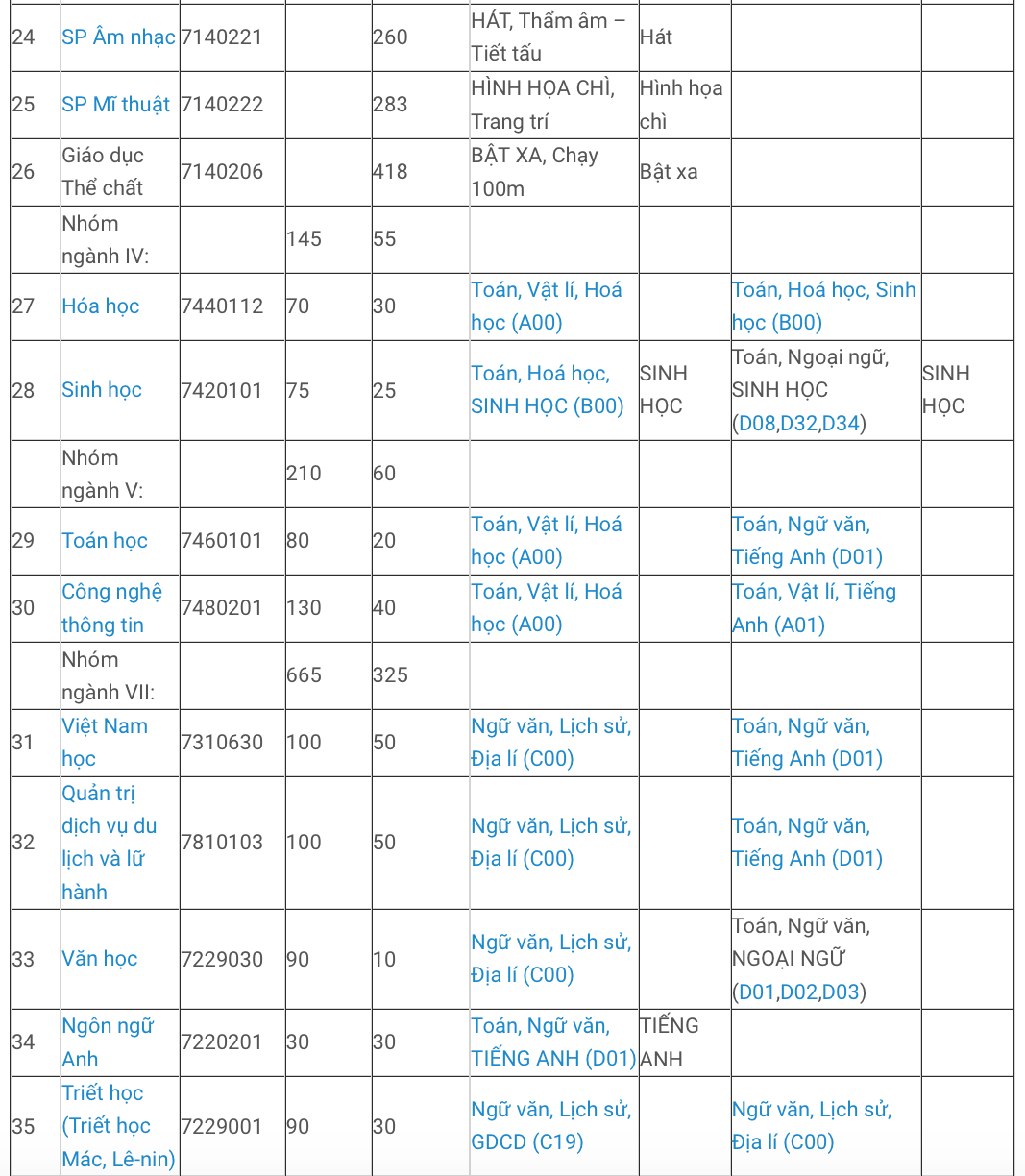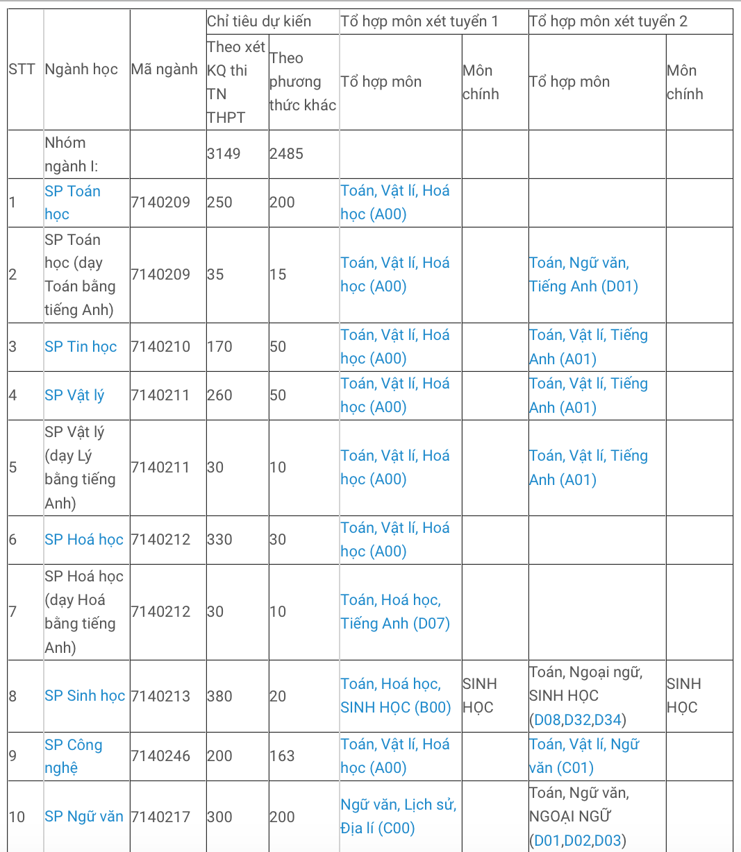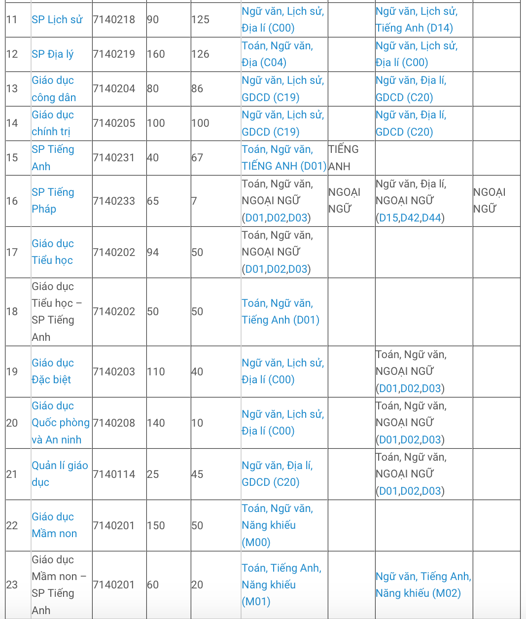 Lưu ý: Các ngành sư phạm phải có ngưỡng đảm bảo đầu vào theo quy định của Bộ Giáo dục và Đào tạo, các ngành ngoài sư phạm phải có ngưỡng đảm bảo chất lượng đầu vào là 15 điểm.